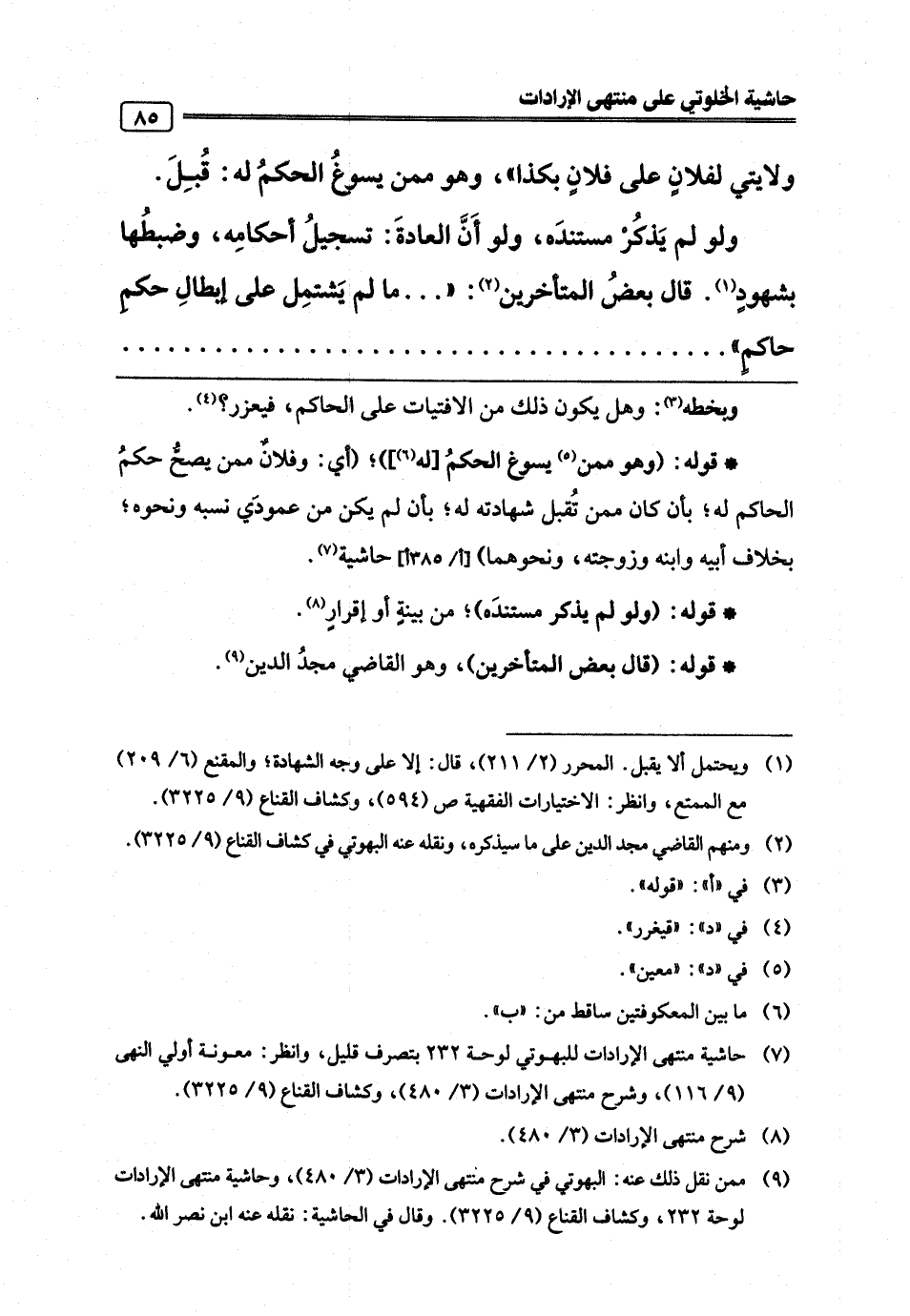 (¬7) حاشية منتهى الإرادات للبهوتي لوحة 232 بتصرف قليل، وانظر: معونة أولي النهى (9/ 116)، وشرح منتهى الإرادات (3/ 480)، وكشاف القناع (9/ 3225).