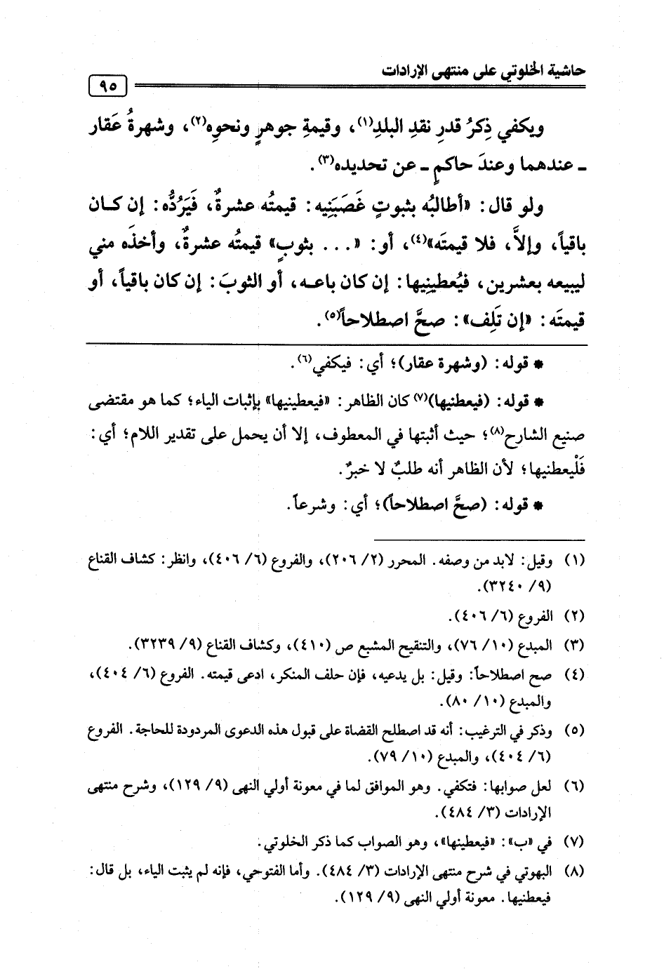 (¬8) البهوتي في شرح منتهى الإرادات (3/ 484). وأما الفتوحي، فإنه لم يثبت الياء، بل قال: فيعطنيها. معونة أولي النهى (9/ 129).