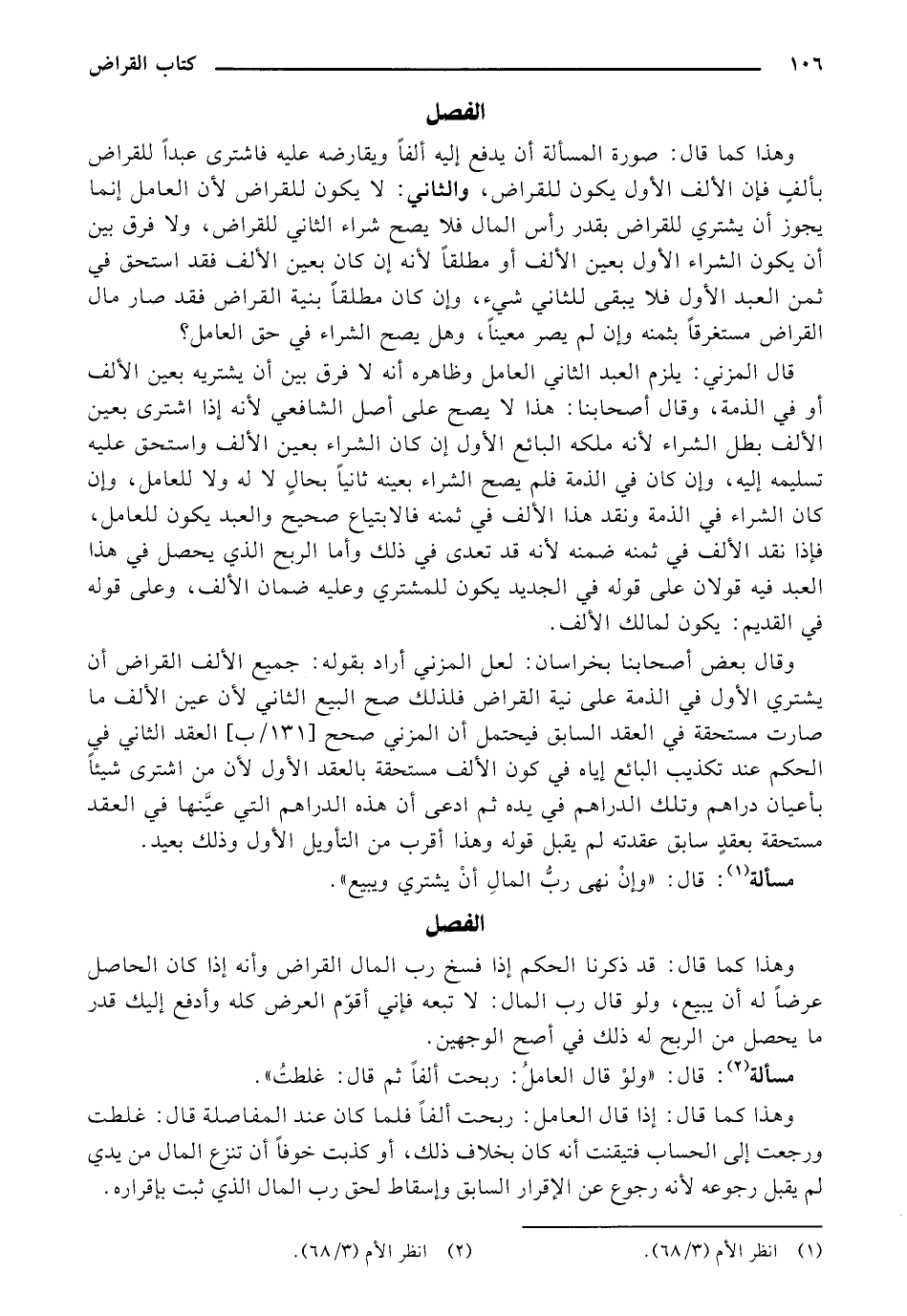 وقال بعض أصحابنا بخراسان: لعل المزني أراد بقوله: جميع الألف القراض أن يشتري الأول في الذمة على نية القراض فلذلك صح البيع الثاني لأن عين الألف ما صارت مستحقة في العقد السابق فيحتمل أن المزني صحح [(13) / ب] العقد الثاني في الحكم عند تكذيب البائع إياه في كون الألف مستحقة بالعقد الأول لأن من اشترى شيئاً بأعيان دراهم وتلك الدراهم في يده ثم ادعى أن هذه الدراهم التي عينها في العقد مستحقة بعقد سابق عقدته لم يقبل قوله وهذا أقرب من التأويل الأول وذلك بعيد.