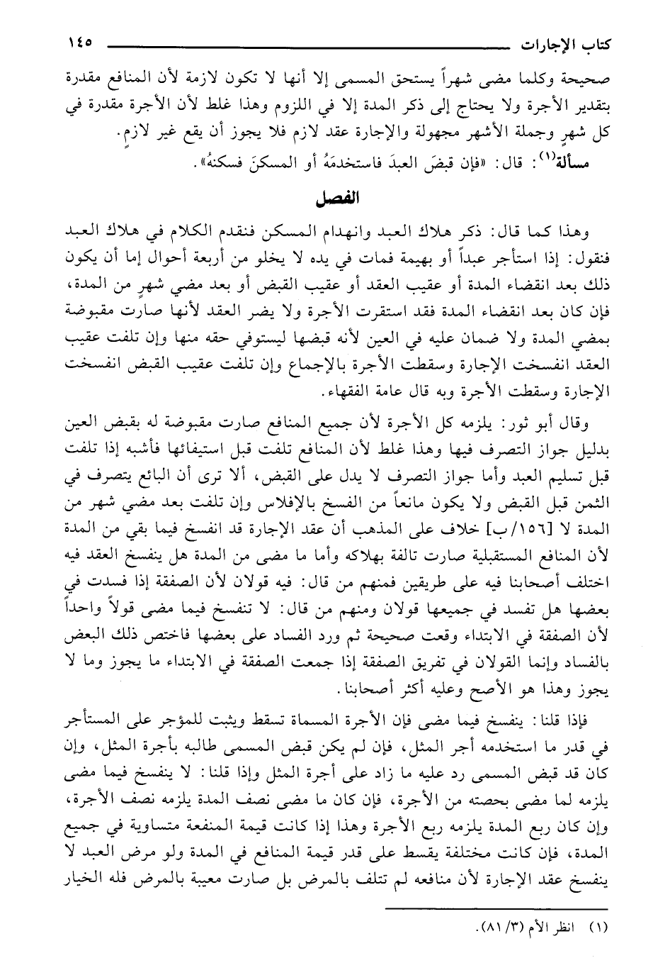 وقال أبو ثور: يلزمه كل الأجرة لأن جمع المنافع صارت مقبوضة له بقبض العين بدليل جواز التعرف فيها وهذا غلط لأن المنافع تلفت قبل استيفائها فأشبه إذا تلفت قبل تسليم العبد وأما جواز التصرف لا يدل على القبض، ألا ترى أن البائع يتصرف في الثمن قبل القبض ولا يكون مانعًا من الفسخ بالإفلاس وإن تلفت بعد مضي شهر من المدة [156/ ب] خلاف على المذهب أن عقد الإجارةً قد انفسخ فيما بقي من المدةَ لأن المنافع المستقبلية صارت تالفةً بهلاكه وأما ما مضى من المدة هل ينفسخ العقد فيه اختلف أصحابنا فيه على طريقين فمنهم من قال: فيه قولان لأن الصفقة إذا فسدت في بعضها هل تفد في جميعها قولان ومنهم من قال: لا تنفخ فيما ض قولًا واحدًا لأن الصفقةً في الابتداء وقت صحيحةً ثم ورد الفساد على بعضها فاختص ذلك البعض بالفساد وإنما القولان في تفريق الصفقةً إذا جمعت الصفقةً في الابتداء ما يجوز وما لا يجوز وهذا هو الأصح وعليه أكثر أصحابنا.