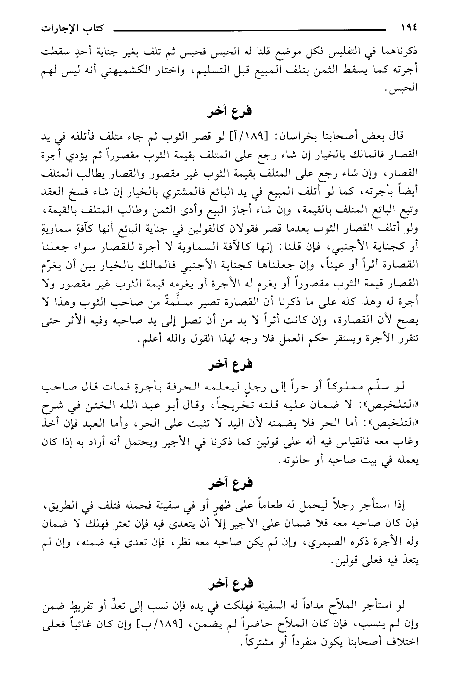 لو استأجر الملاّح مدادًا له السفينة فهلكت في يده فإن نسب إلى تعدٍّ أو تفريطٍ ضمن وإن لم ينسب، فإن كان الملاّح حاضرًا لم يضمن، [189/ ب] وإن كان غائبًا فعلى اختلاف أصحابنا يكون منفردًا أو مشتركًا.