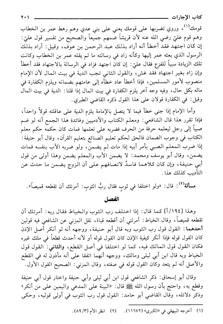 وأما الإمام إذا جني خطأ فيما لا يتصل بالإمامة يلزم الدية على عاقلته قولًا واحدًا، فإذا تقرر هذا قال الشافعي: ومعلم الكتاب والآدميين وفائدة هذا الجمع أنه لو ضم صبيًا إلى رجل ليعلمه حرفة من الحرف فضربه على تعلمها فمات كان حكمه حكم معلم الكتاب في وجوب الضمان بأمر أبيه إذا مات لم يضمن، ولو ضربه الأب بنفسه فمات يضمن، وقال أبو يوسف ومحمد: لا يضمن الأب والمعلم يضمن وهذا أولى من قول أبي حنيفة، وإن كان كلاهما فاسدٌ لاتصافهم على أن الزوج يضمن ما حدث عن التأديب كذلك هذا.