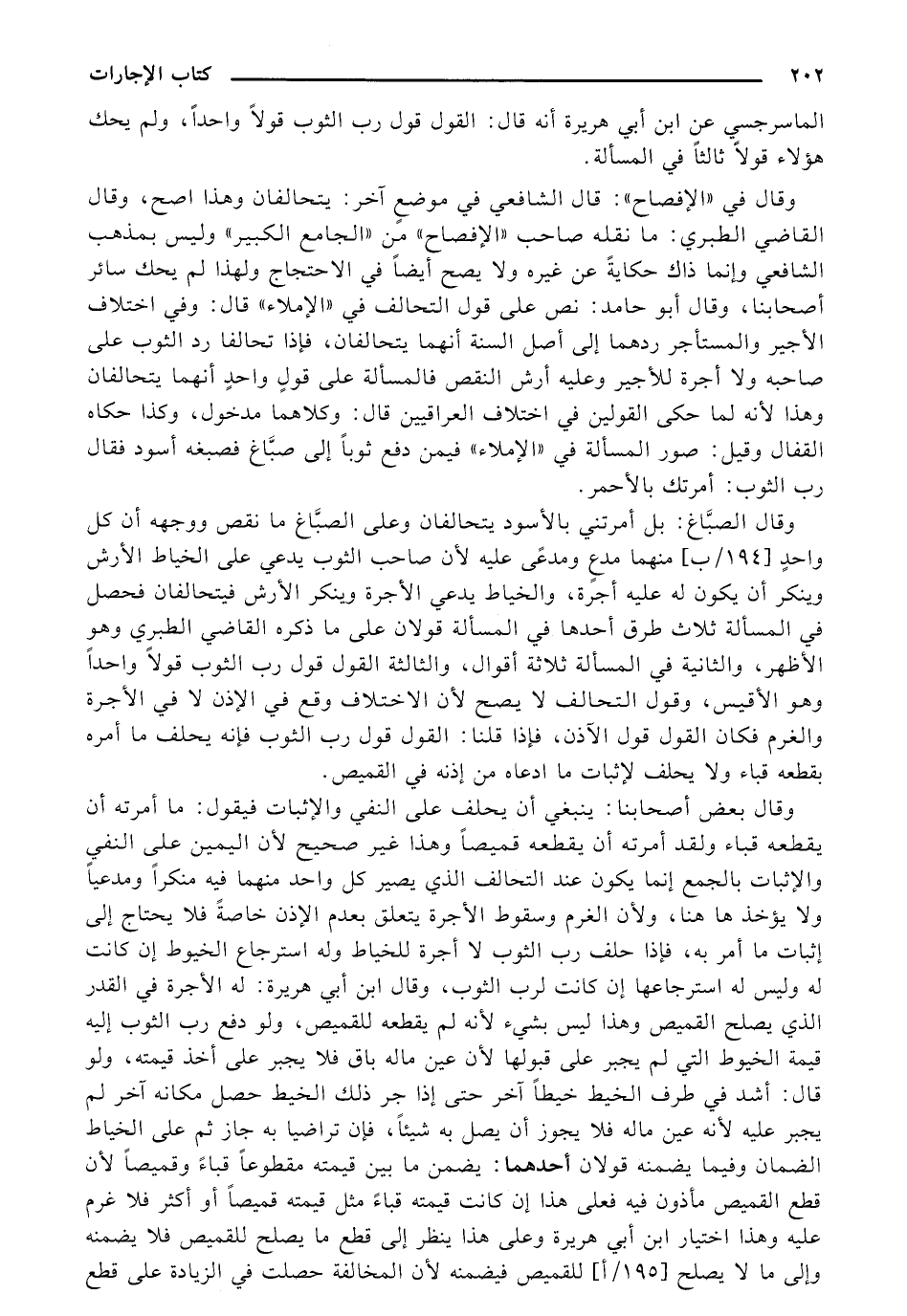 الماسرجسي عن ابن أبي هريرة أنه قال: القول قول رب الثوب قولًا واحدًا، ولم يحك هؤلاء قولًا ثالثًا في المسألة.
