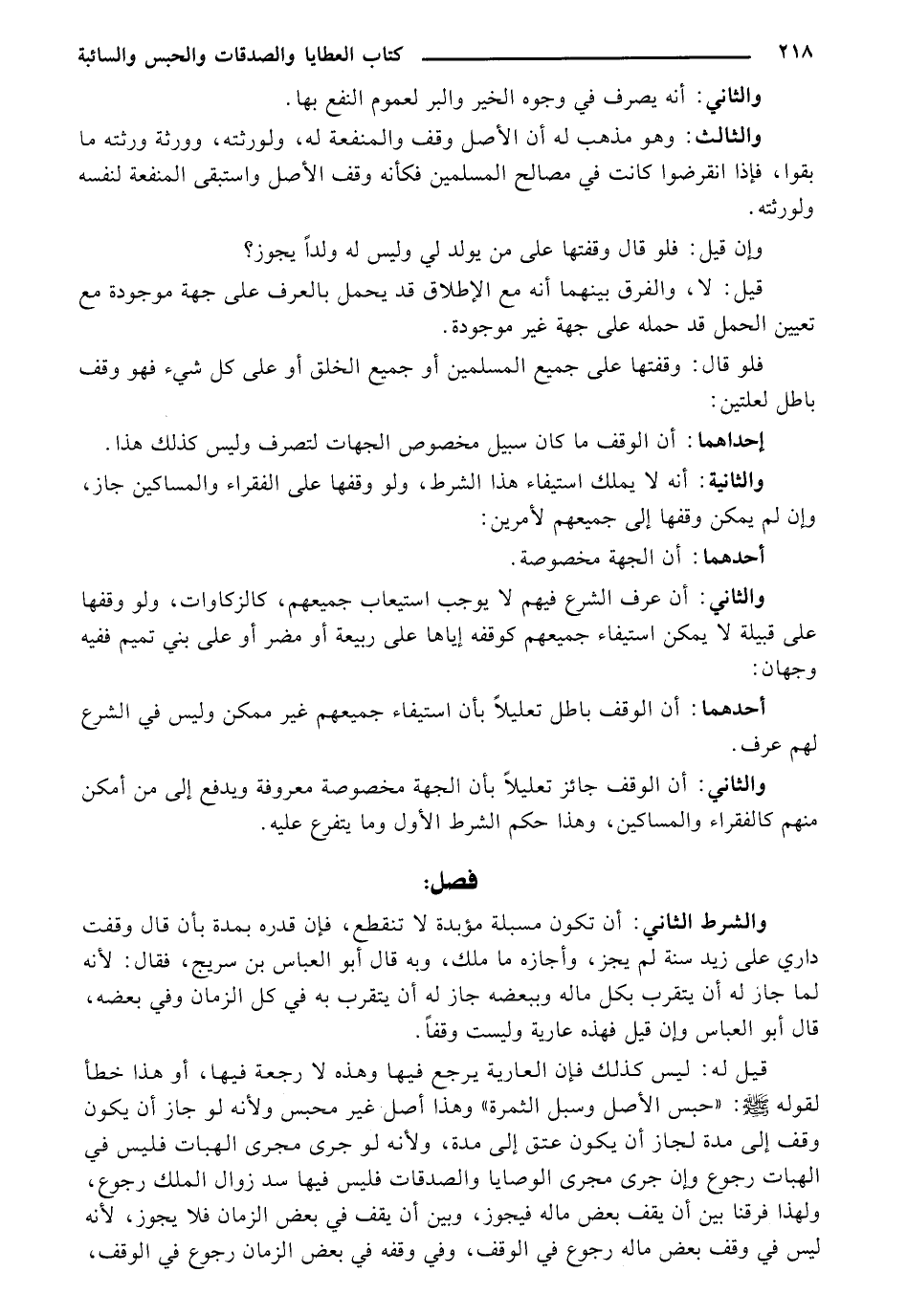 إحداهما: أن الوقف ما كان سبيل مخصوص الجهات لتصرف وليس كذلك هذا.