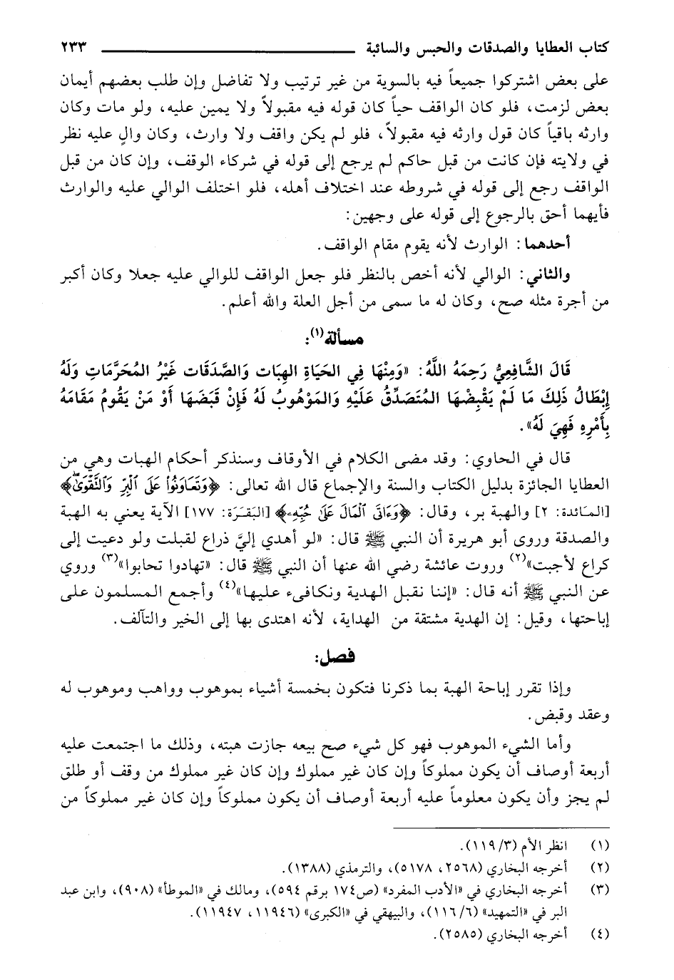 قال الشافعي رحمه الله: "ومنها في الحياة الهبات والصدقات غير المحرمات وله إبطال ذلك ما لم يقبضها المتصدق عليه والموهوب له فإن قبضها أو من يقوم مقامه بأمره فهي له".