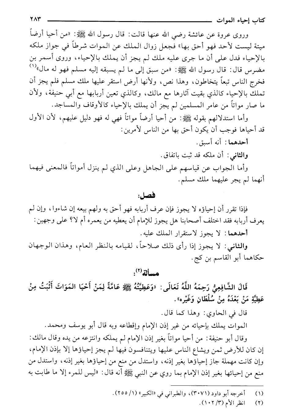 قَالَ الشَّافِعِيُّ رَحِمَهُ اللهُ تَعَالَى: "وَعَطِيَّتُهُ صلى الله عليه وسلم عَامَّةً لِمَنْ أَحْيَا المَوَاتَ أَثْبَتُ مِنْ عَطِيَّةِ مَنْ بَعْدَهُ مِنْ سُلْطَانِ وَغَيْره".