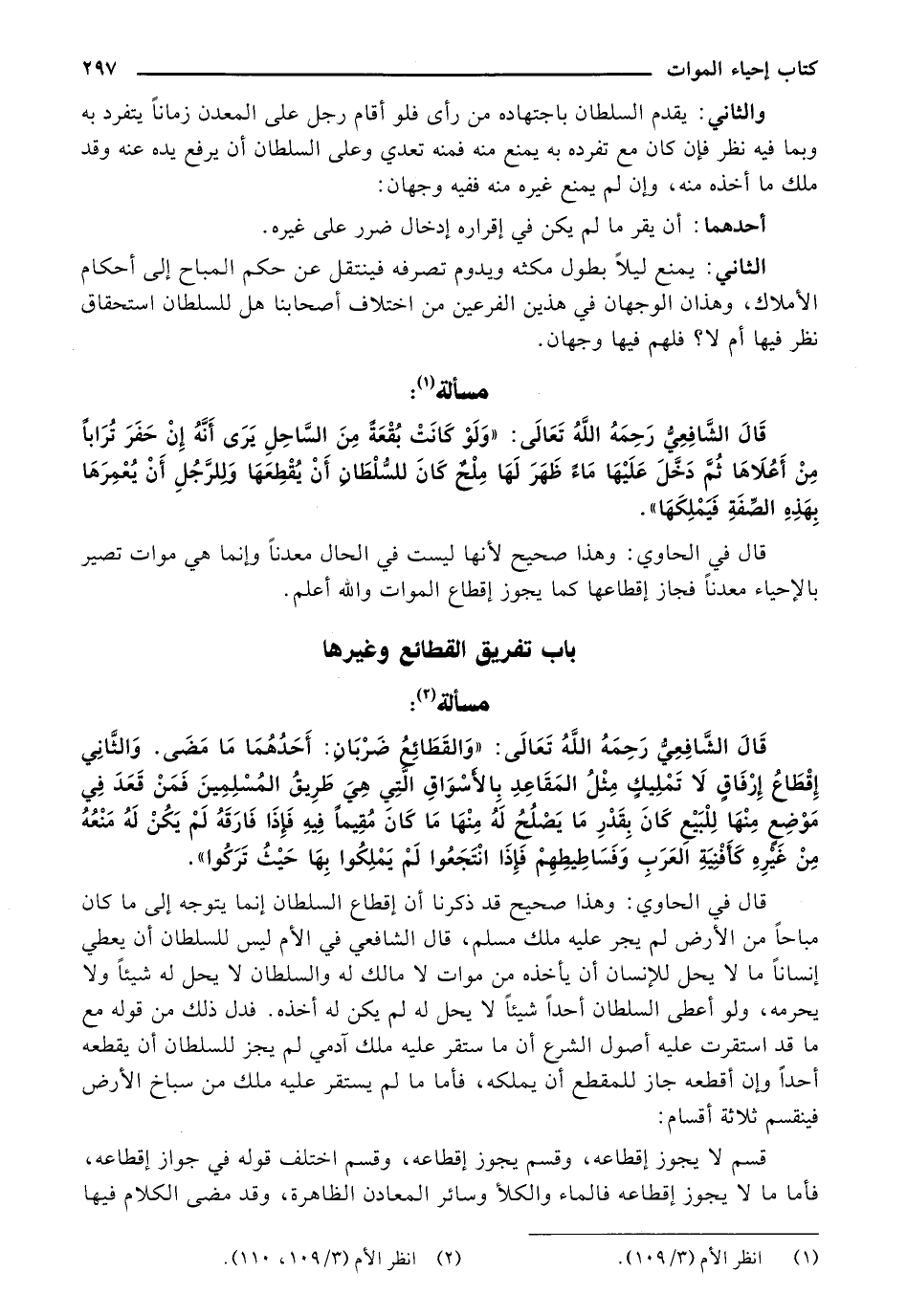 قَالَ الشَّافِعِيُّ رَحِمَهُ اللهُ تَعَالَى: " وَلَوْ كَانَتْ بُقْعَةٌ مِنَ السَّاحِلِ يَرَى أَنَّهُ إِنْ حَفَرَ تُرَابًا مِنْ أَعْلَاهَا ثُمَّ دَخَلَ عَلَيْهَا مَاءٌ ظَهَرَ لَهَا مِلْحٌ، كَانَ لِلسُّلْطَانِ أَنْ يُقْطِعَهَا، وَلِلرَّجُلِ أَنْ يُعَمِّرَهَا بِهَذِهِ الصِّفَةِ فَيَمْلِكَهَا"