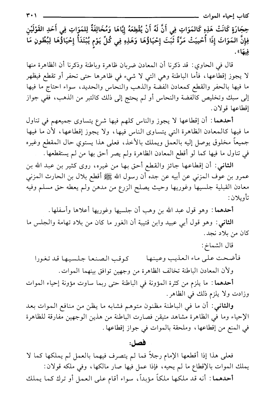 والثاني: أن ما في الباطنة مظنون متوهم فشابه ما يظن من منافع الموات بعل الإحياء وما في الظاهرة مشاهد متيقن فصارت الباطنة من هذين الوجهين مفارقة للظاهرة في المنع من إقطاعها، وملحقة بالموات في جواز إقطاعها.