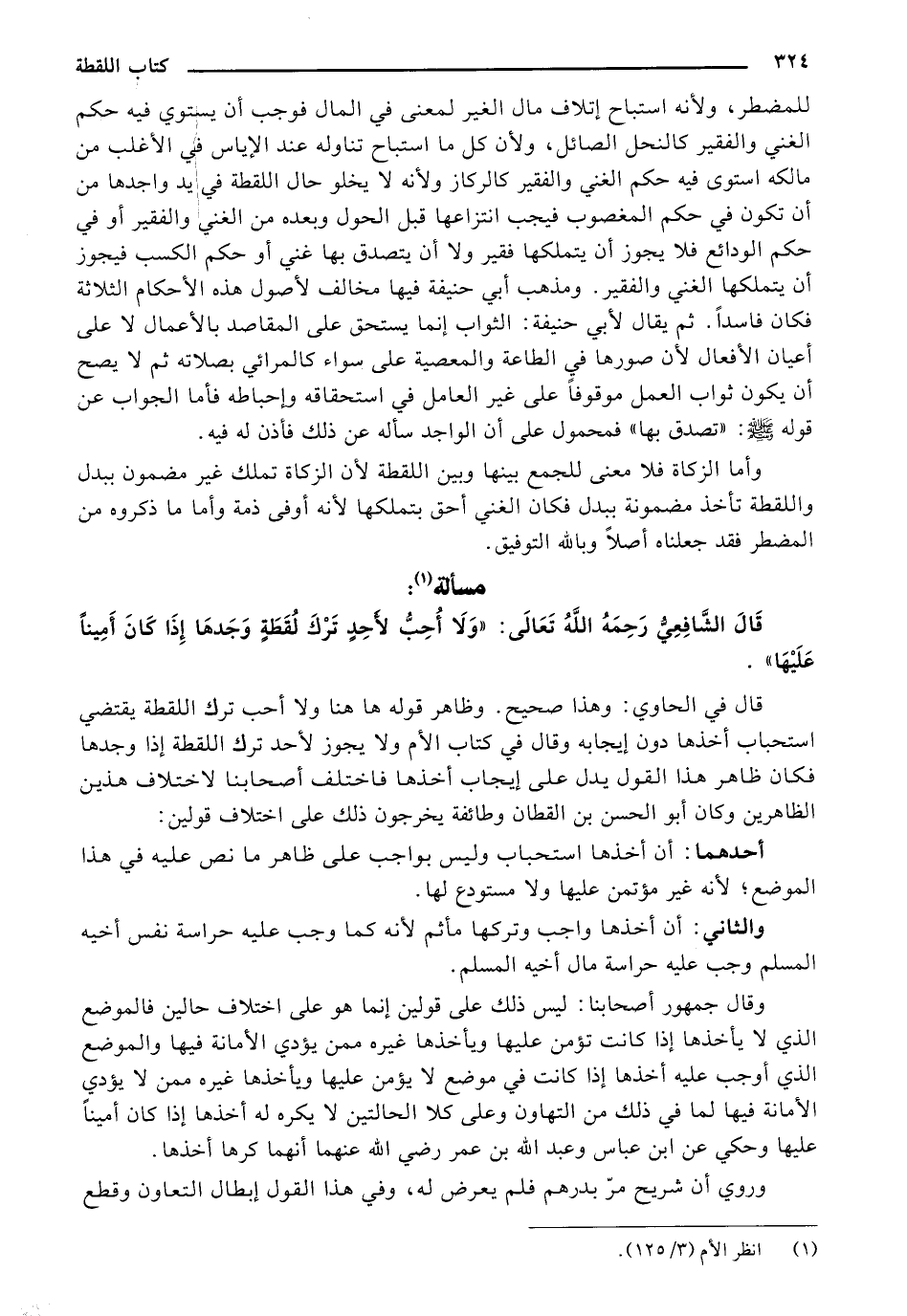 قَالَ الشَّافِعِيُّ رَحِمَهُ اللهُ تَعَالَى: «وَلَا أُحِبُّ لأَحِدٍ تَرْكَ لُقَطَةٍ وَجَدَهَا إِذَا كَانَ أَمِينًا عَلَيْهَا».