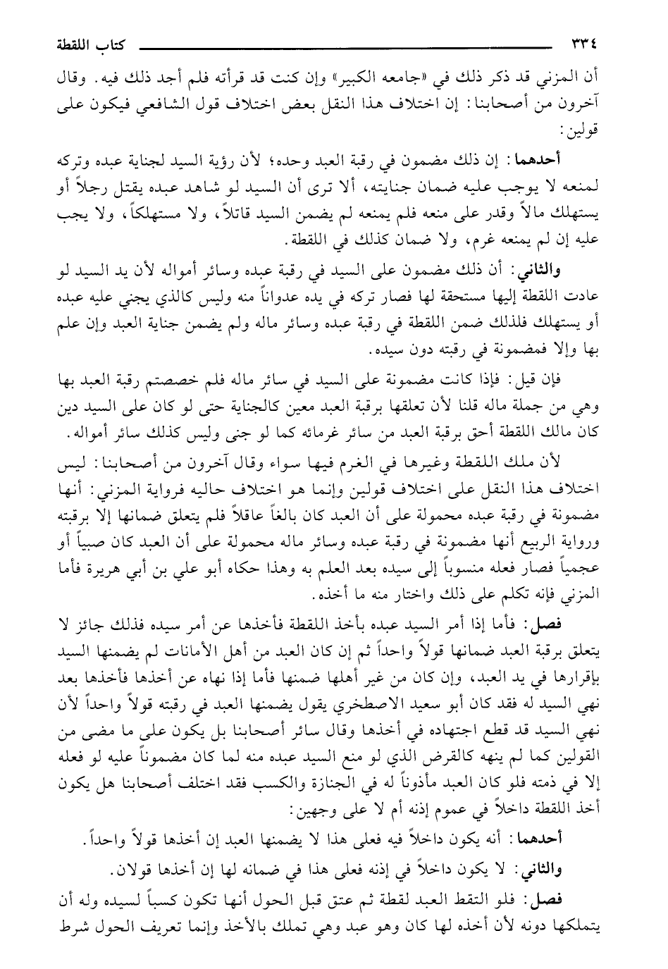 لأن ملك اللقطة وغيرها في الغرم فيها سواء وقال آخرون من أصحابنا: ليس اختلاف هذا النقل على اختلاف قولين وإنما هو اختلاف حاليه فرواية المزني: أنها مضمونة في رقبة عبده محمولة على أن العبد كان بالغًا عاقلًا فلم يتعلق ضمانها إلا برقبته ورواية الربيع أنها مضمونة في رقبة عبده وسائر ماله محمولة على أن العبد كان صبيًا أو عجميًا فصار فعله منسوبًا إلى سيده بعد العلم به وهذا حكاه أبو علي بن أبي هريرة فأما المزني فغنه تكلم على ذلك واختار منه ما أخذه.