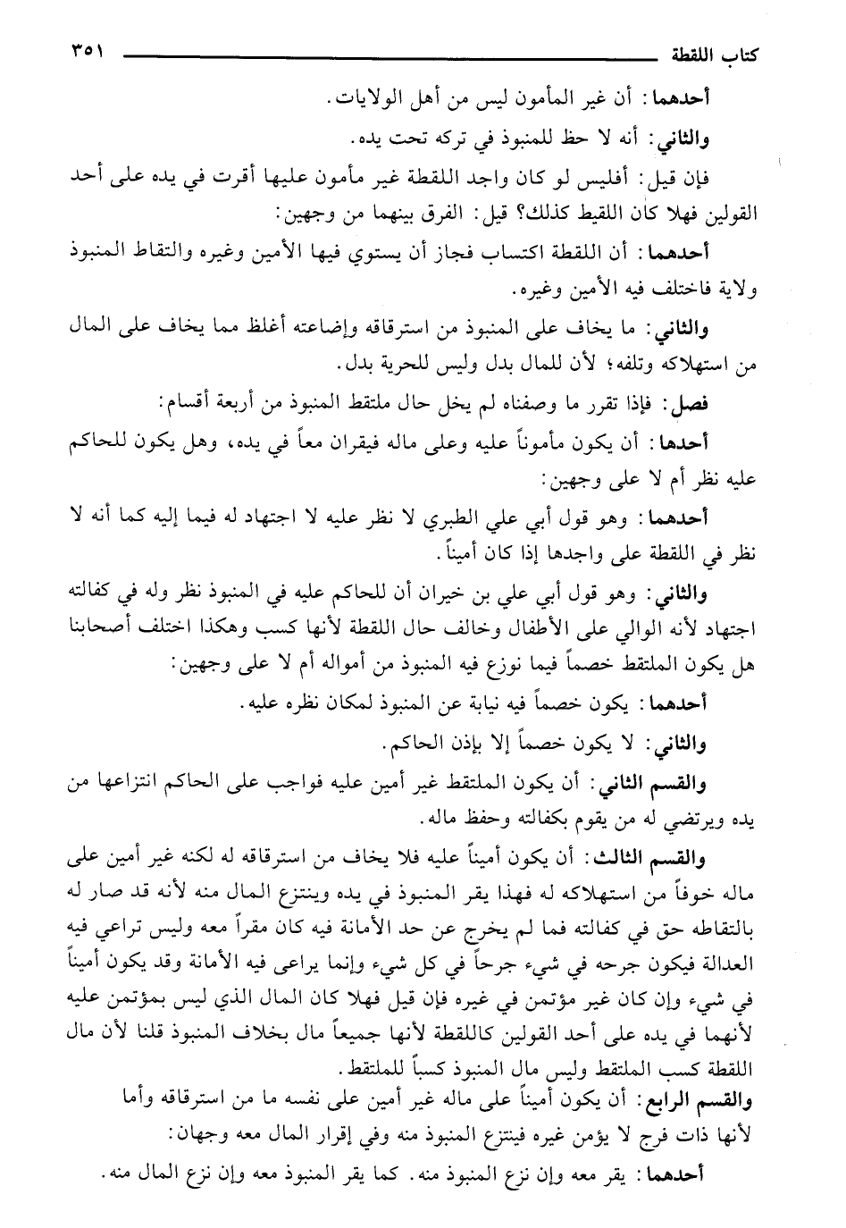 والقسم الثاني: أن يكون الملتقط غير أمين عليه فواجب على الحاكم انتزاعها من يده ويرتضي له من يقوم بكفالته وحفظ ماله.