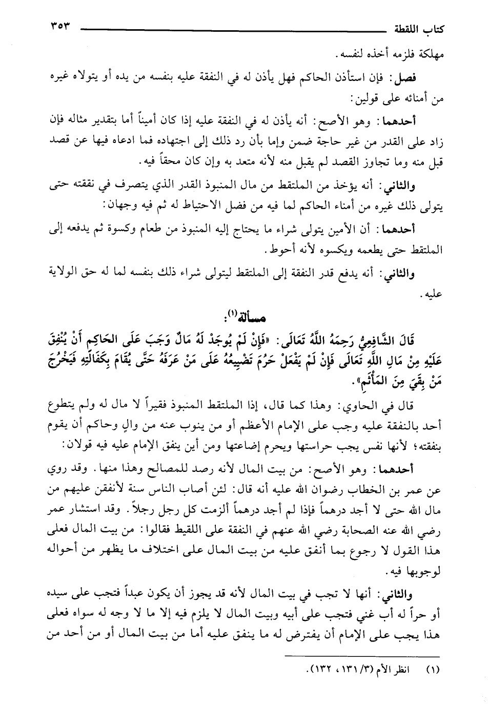 قال الشافعي رحمه الله تعالي: "فإن لم يوجد له مال وجب على الحاكم أن ينفق عليه من مال الله فإن لم يفعل حرم تضييعه على من عرفه حتى يقام بكفالته فخرج من بقي من المأثم".