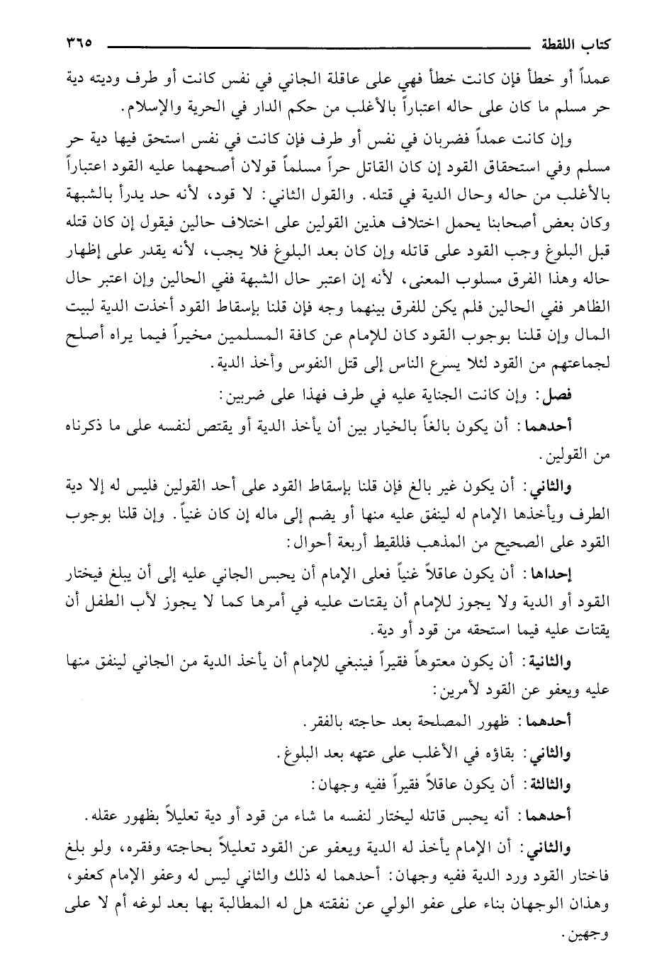 والثاني: أن يكون غير بالغ فان قلنا بإسقاط القود على أحد القولين فليس له إلا دية الطرف ويأخذها الإمام له لينفق عليه منها أو يضم إلى ماله إن كان غنيًا. وإن قلنا بوجوب القود على الصحيح من المذهب فللقيط أربعة أحوال: