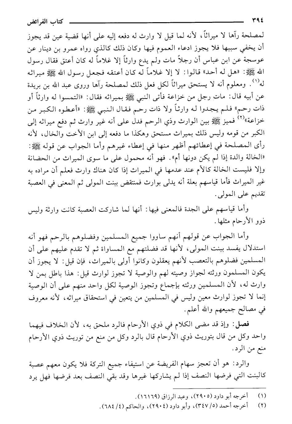 فصل: وإذ قد مضى الكلام في ذوي الأرحام فالرد ملحق به، لأن الخلاف فيهما واحد وكل من قال بتوريث ذوي الأرحام قال بالرد وكل من منع من توريث ذوي الأرحام منع من الرد.