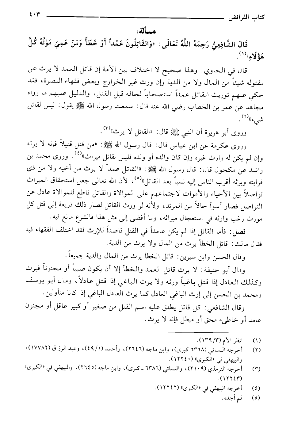 قَالَ الشَّافِعِيُّ رَحِمَهُ اللهُ تَعَالَى: "وَالقَاتِلُونَ عَمْدًا أَوْ خَطًَأ وَمَنْ عَمِيَ مَوْتُهُ كَلَّ هَؤُلَاءِ".