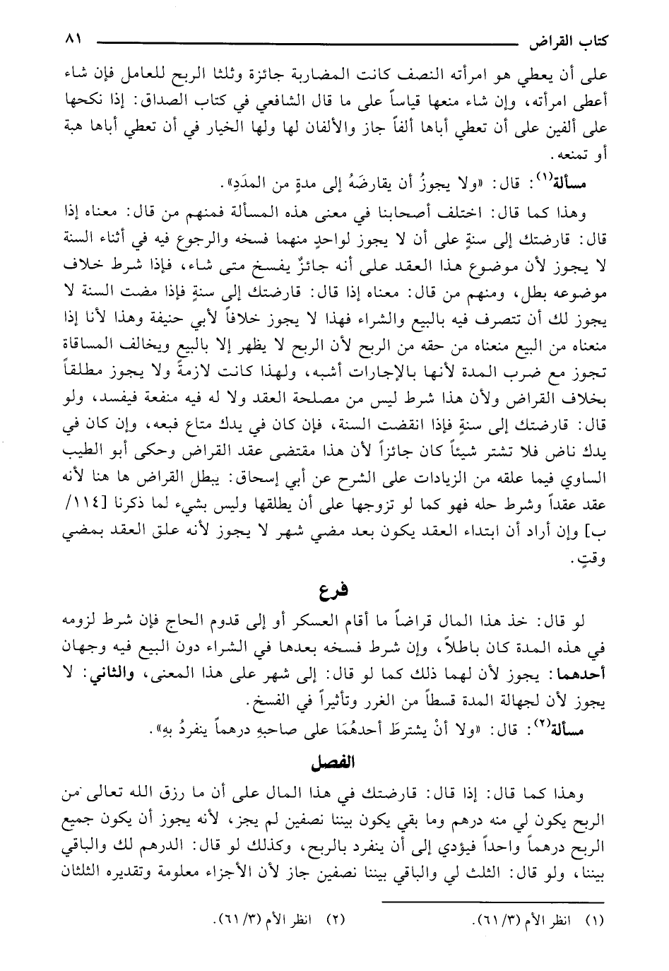 لو قال: خذ هذا المال قراضًا ما أقام العسكر أو إلى قدوم الحاج فإن شرط لزومه في هذه المدة كان باطلًا، وإن شرط فسخه بعدها في الشراء دون البيع فيه وجهان أحدهما: يجوز لأن لهما ذلك كما لو قال: إلى شهر على هذا المعنى، والثاني: لا يجوز لأن لجهالة المدة قسطًا من الغرر وتأثيًرا في الفسخ.