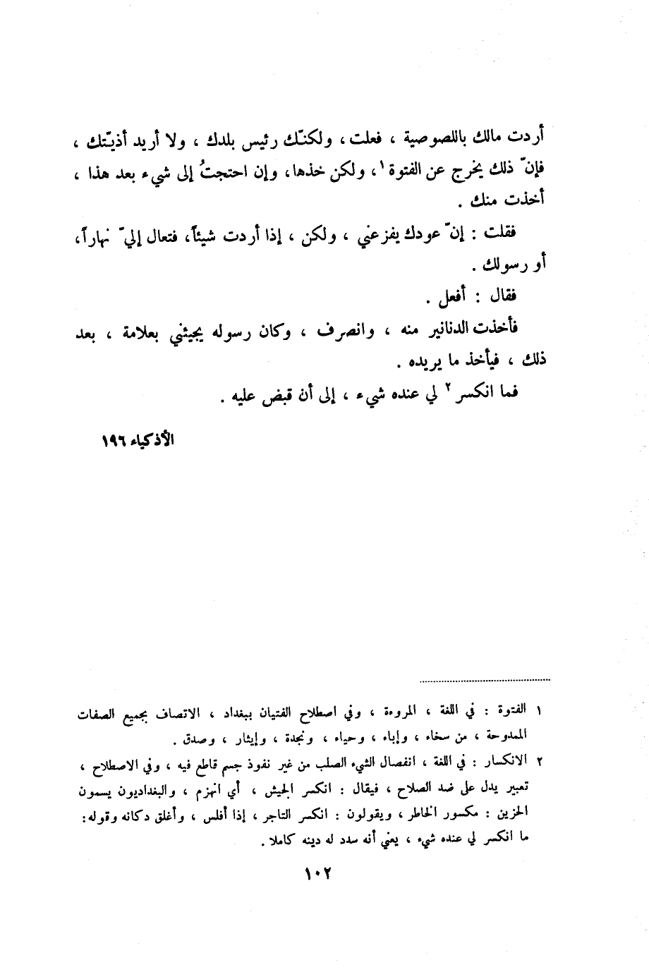 أردت مالك باللصوصية، فعلت، ولكنّك رئيس بلدك، ولا أريد أذيّتك، فإنّ ذلك يخرج عن الفتوة «1» ، ولكن خذها، وإن احتجت إلى شيء بعد هذا، أخذت منك.