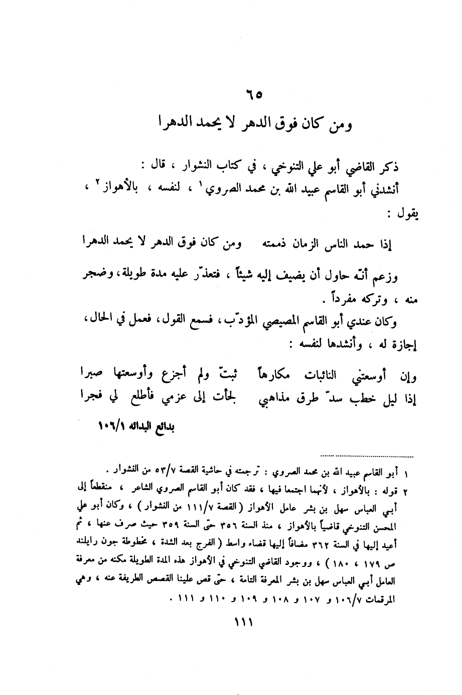 65 ومن كان فوق الدهر لا يحمد الدهرا