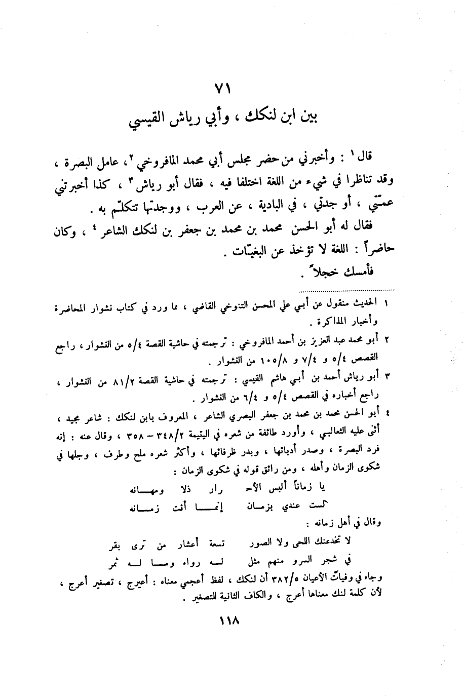 71 بين ابن لنكك، وأبي رياش القيسي
