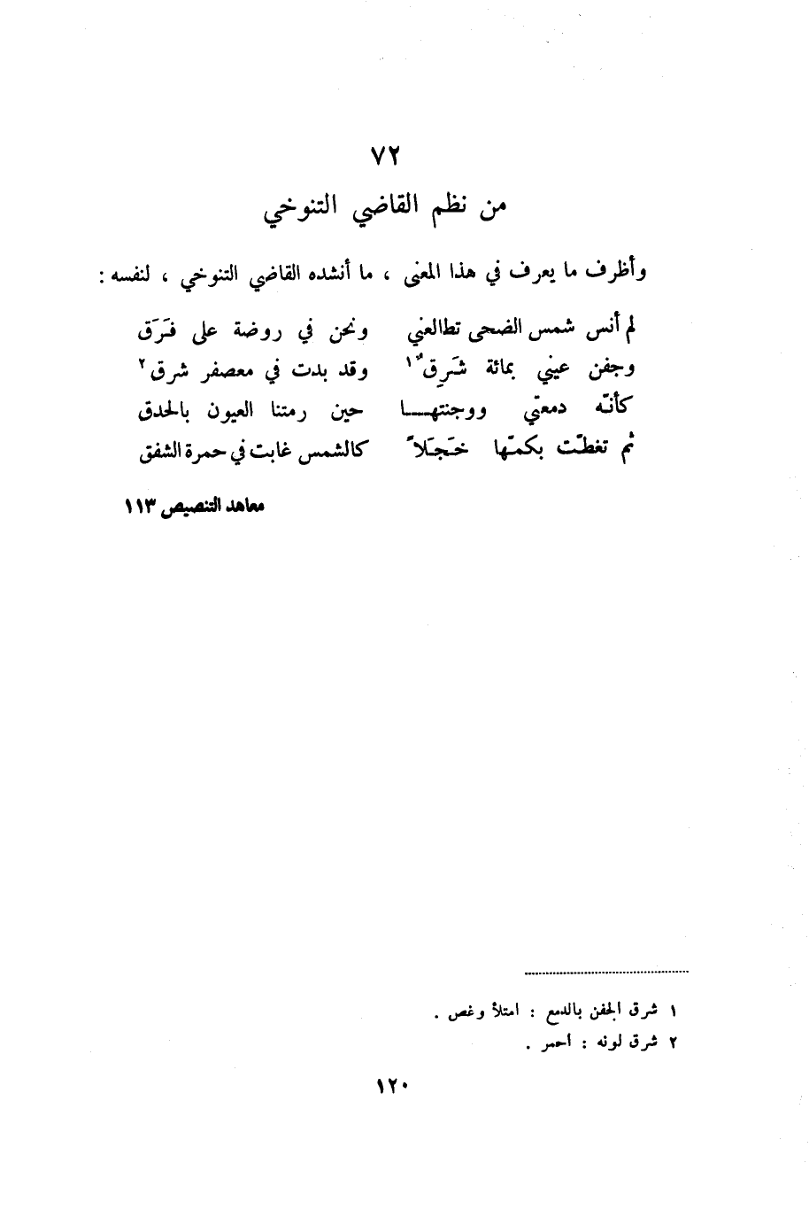 وأظرف ما يعرف في هذا المعنى، ما أنشده القاضي التنوخي، لنفسه: