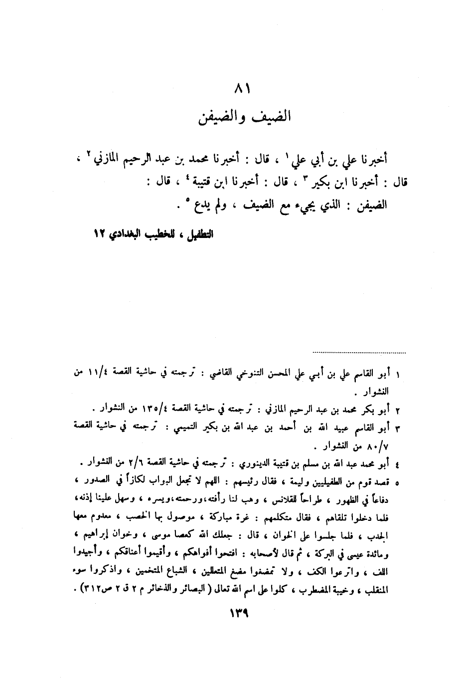 أخبرنا علي بن أبي علي «1» ، قال: أخبرنا محمد بن عبد الرحيم المازني «2» ، قال: أخبرنا ابن بكير «3» ، قال: أخبرنا ابن قتيبة «4» ، قال: