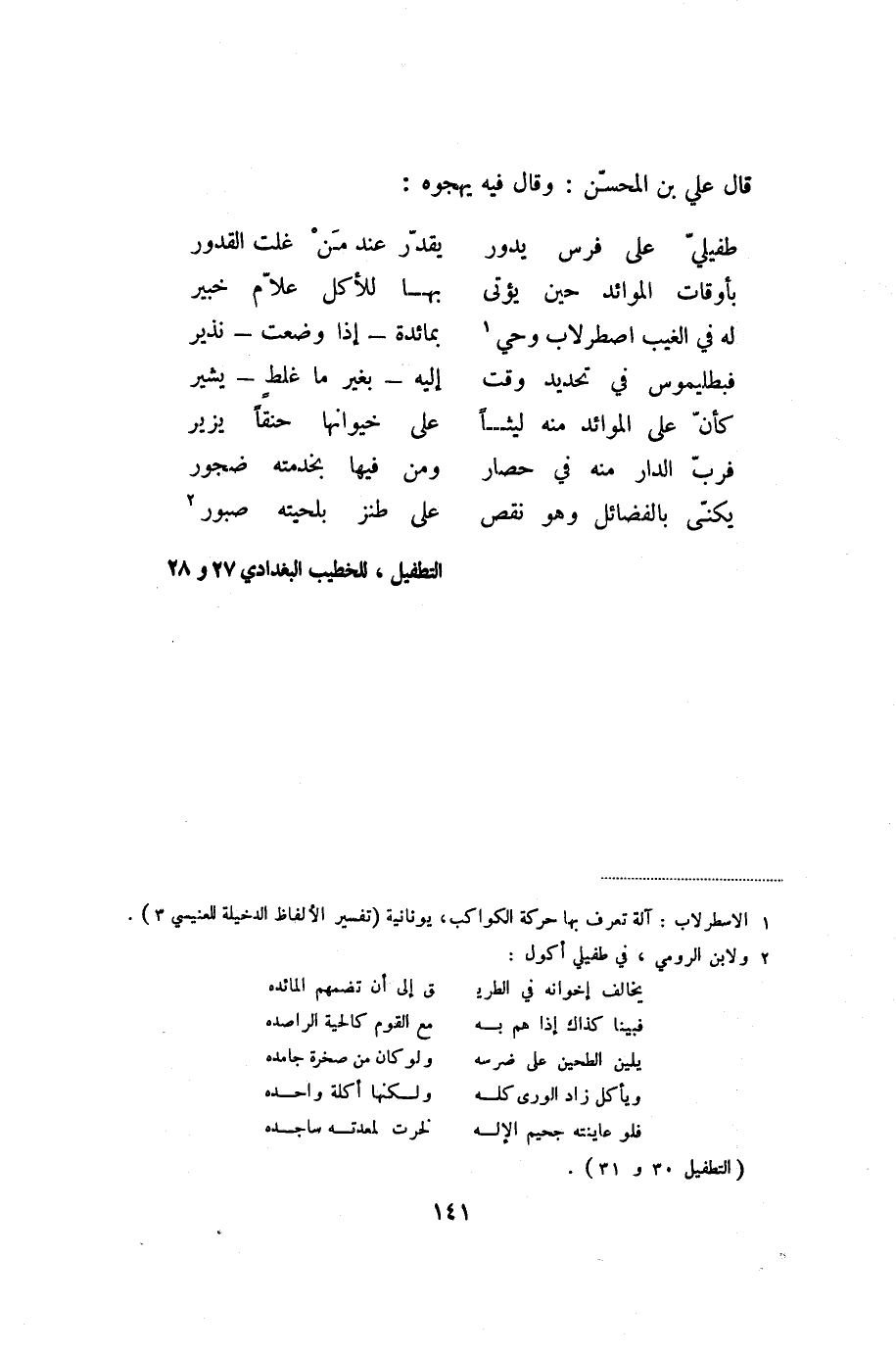 قال علي بن المحسّن: وقال فيه يهجوه: