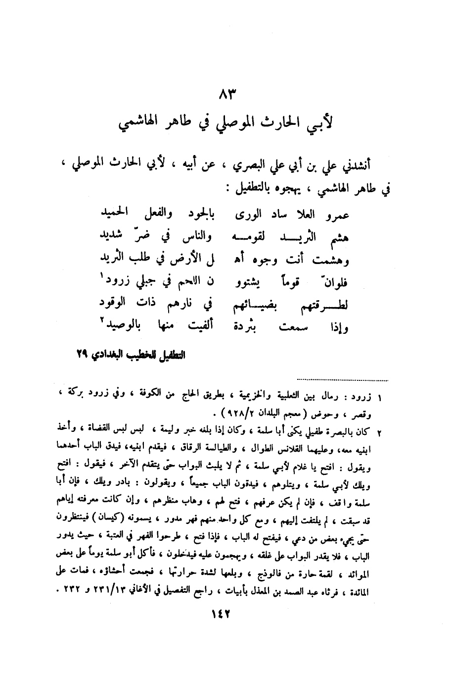 83 لأبي الحارث الموصلي في طاهر الهاشمي