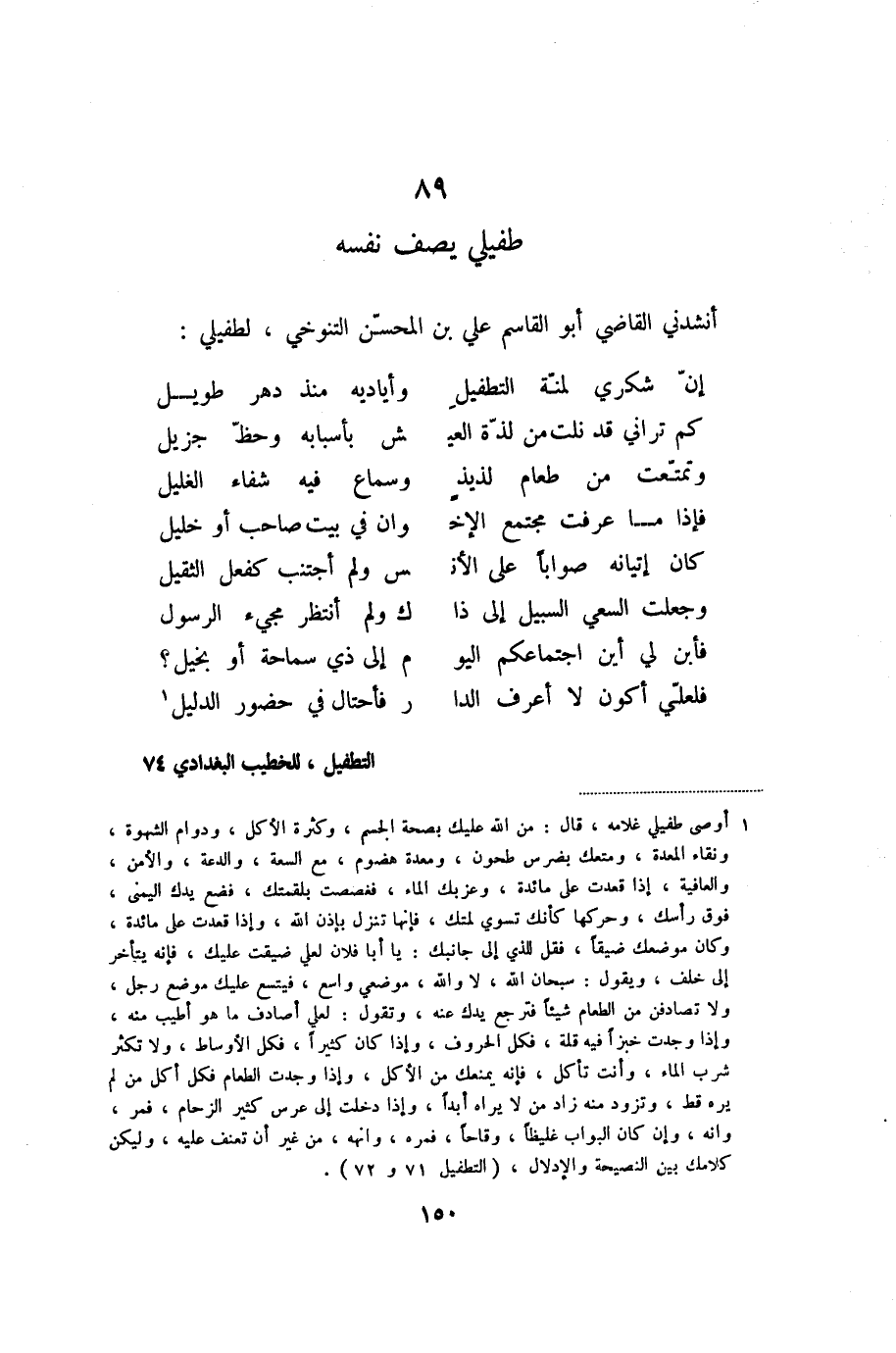 إنّ شكري لمنّة التطفيل ... وأياديه منذ دهر طويل
