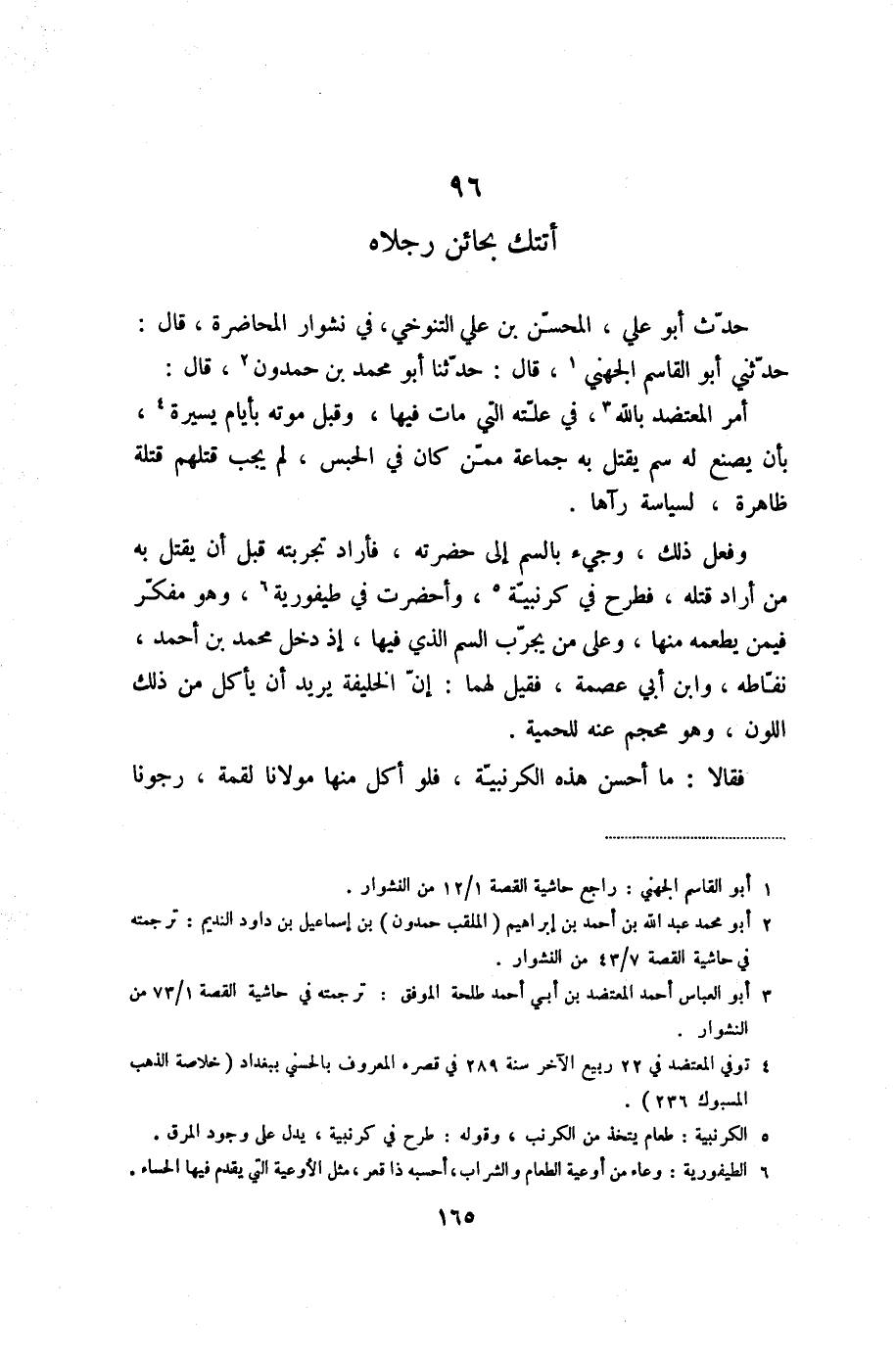 حدّث أبو علي، المحسّن بن علي التنوخي، في نشوار المحاضرة، قال: