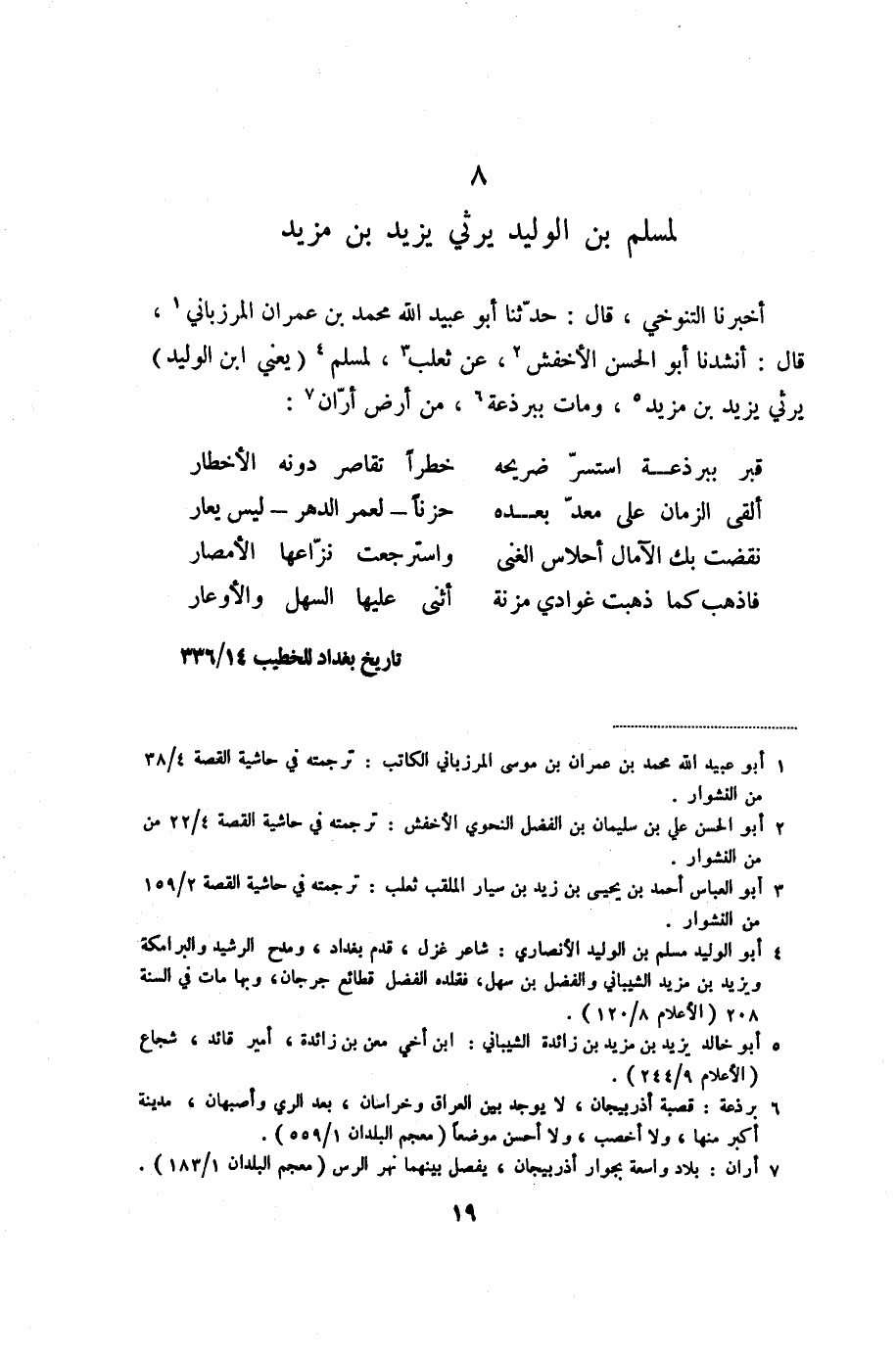 8 لمسلم بن الوليد يرثي يزيد بن مزيد