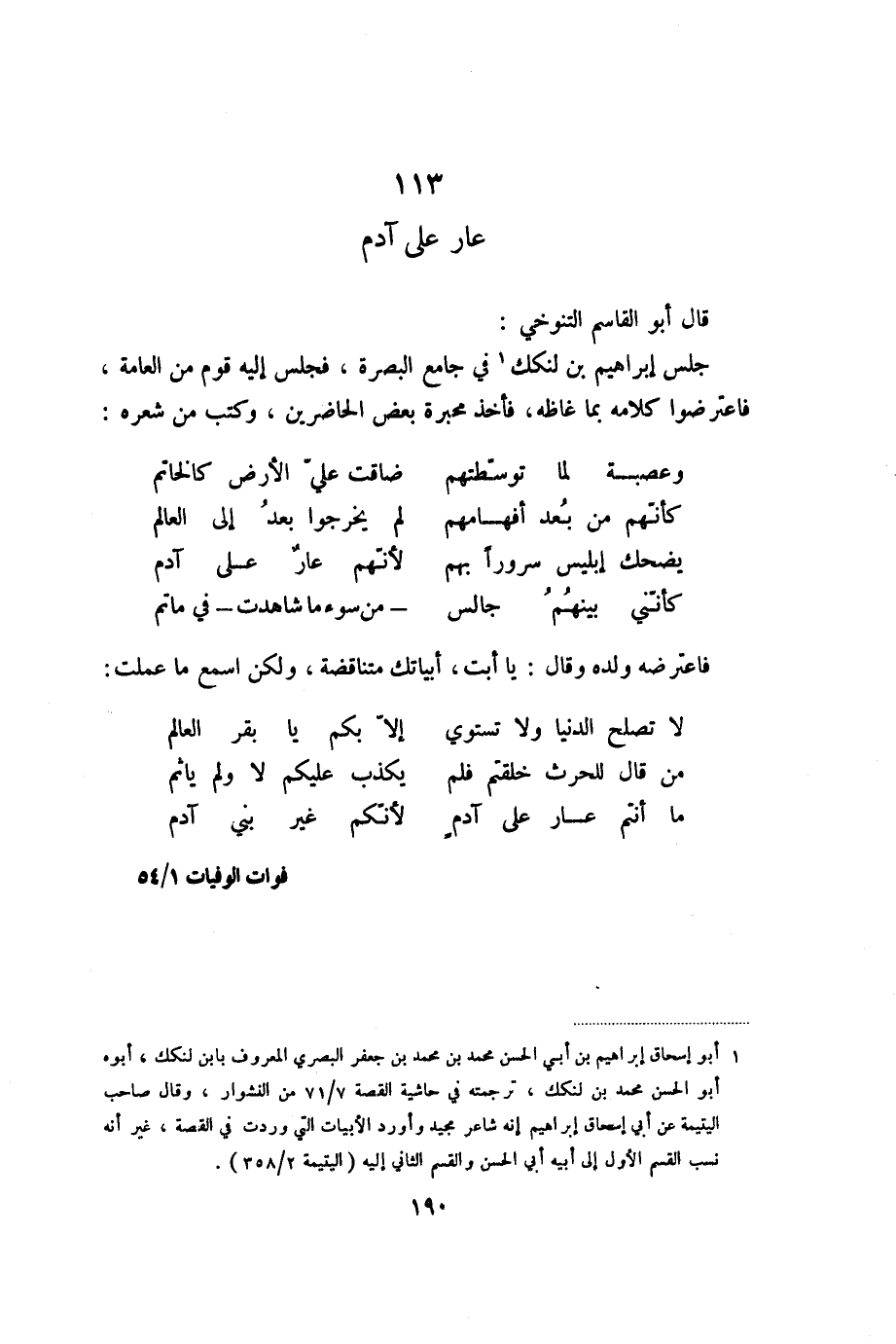 جلس إبراهيم بن لنكك «1» في جامع البصرة، فجلس إليه قوم من العامة، فاعترضوا كلامه بما غاظه، فأخذ محبرة بعض الحاضرين، وكتب من شعره: