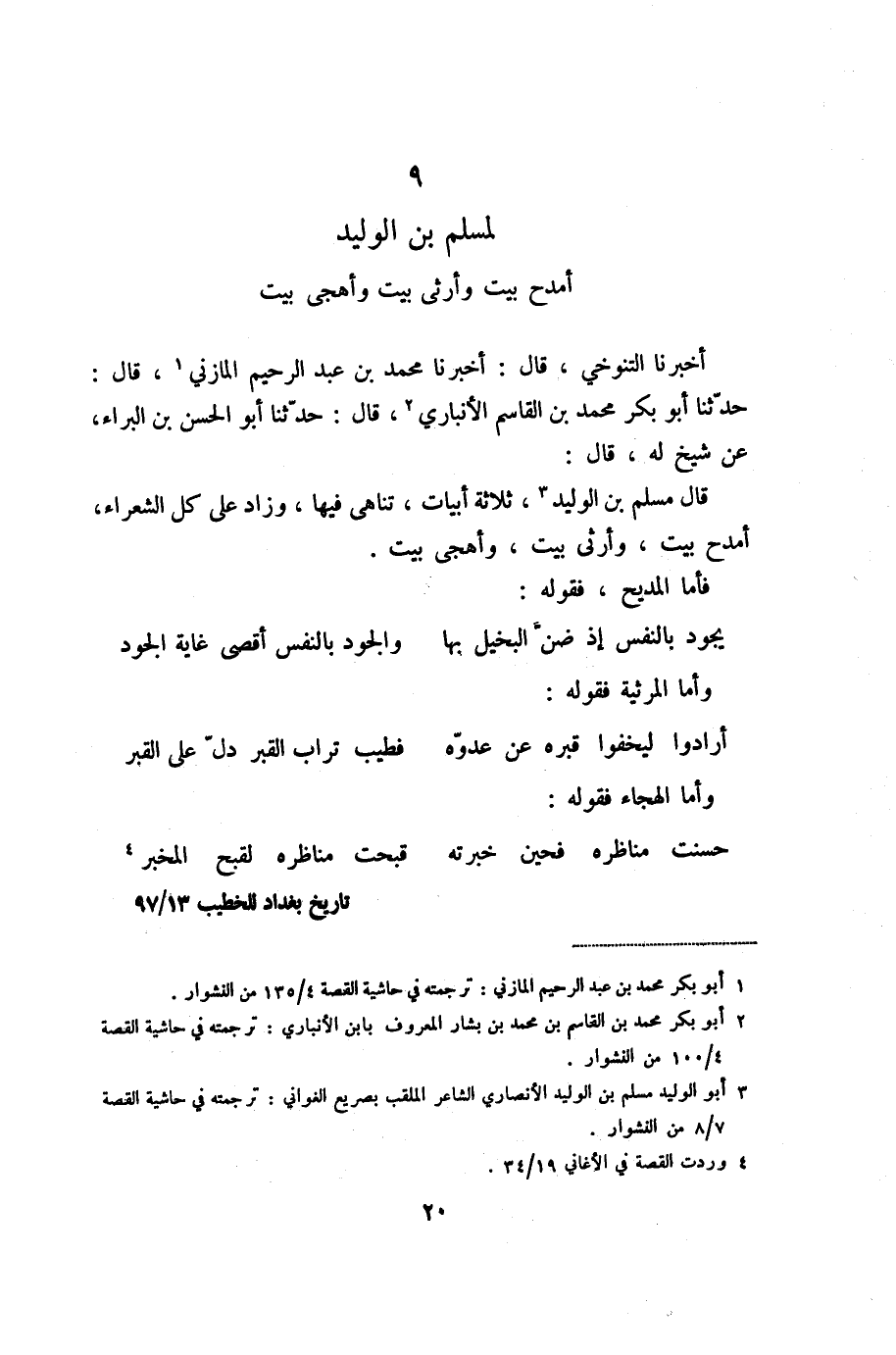 9 لمسلم بن الوليد أمدح بيت وأرثى بيت وأهجى بيت