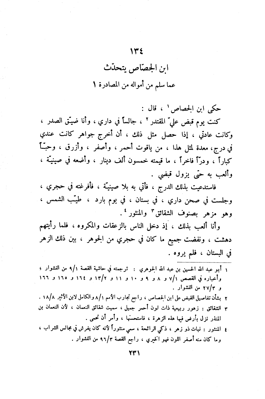 134 ابن الجصّاص يتحدّث عما سلم من أمواله من المصادرة 1