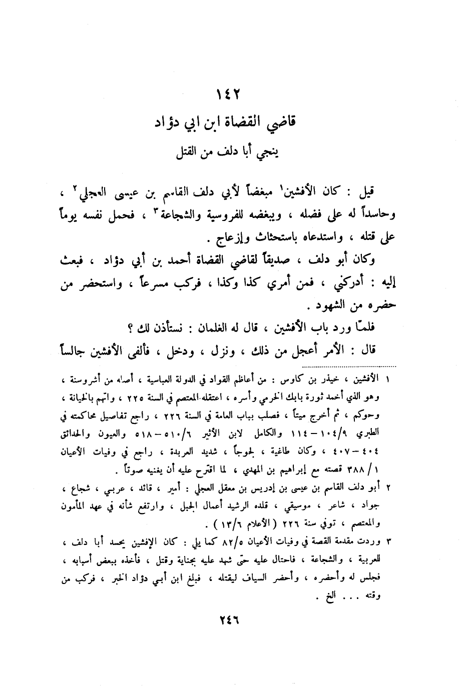142 قاضي القضاة ابن ابي دؤاد ينجي أبا دلف من القتل