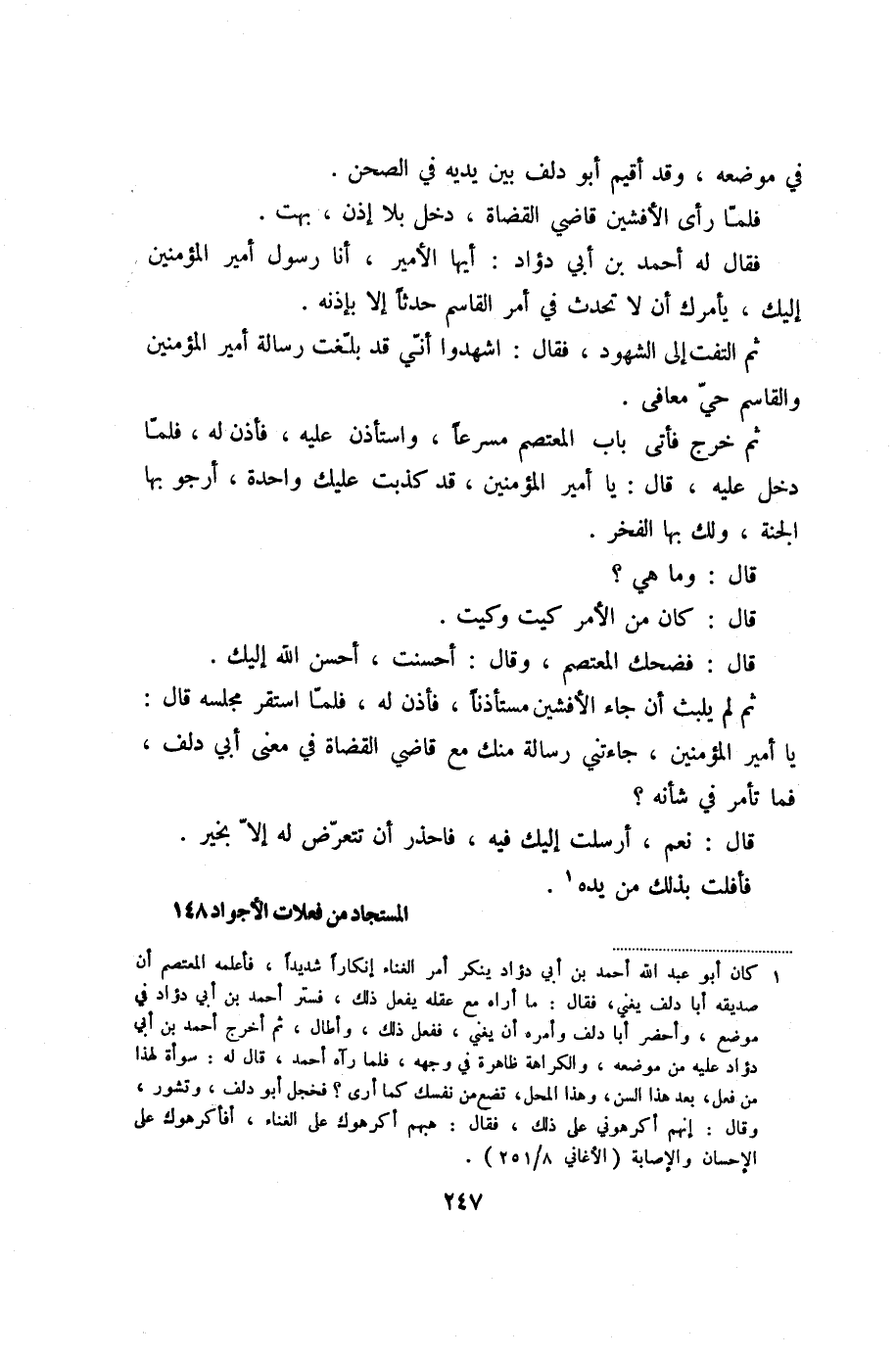 يا أمير المؤمنين، جاءتني رسالة منك مع قاضي القضاة في معنى أبي دلف، فما تأمر في شأنه؟
