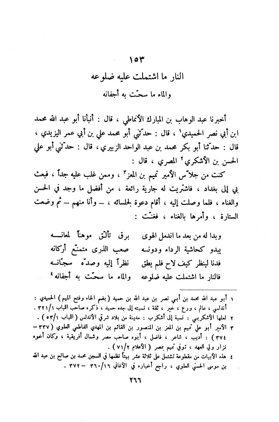 فالنار ما اشتملت عليه ضلوعه ... والماء ما سحّت به أجفانه «4»