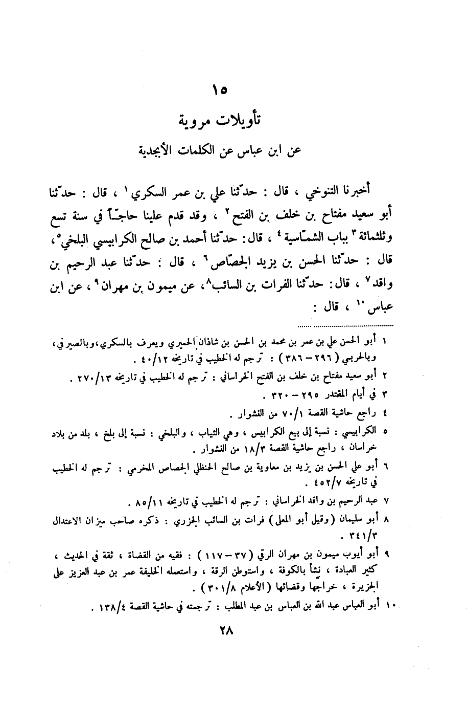 15 تأويلات مروية عن ابن عباس عن الكلمات الأبجدية