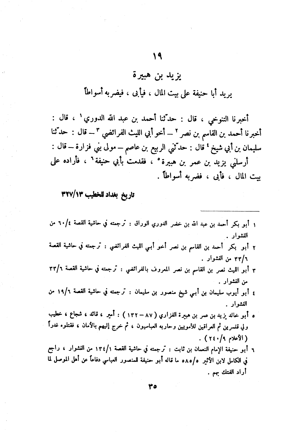 19 يزيد بن هبيرة يريد أبا حنيفة على بيت المال، فيأبى، فيضربه أسواطا