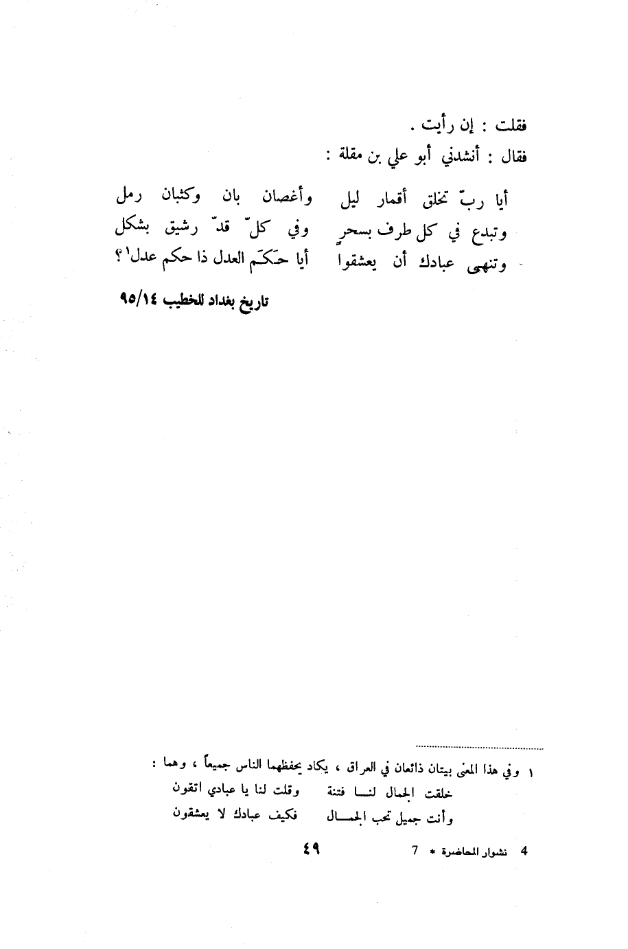فقال: أنشدني أبو علي بن مقلة: