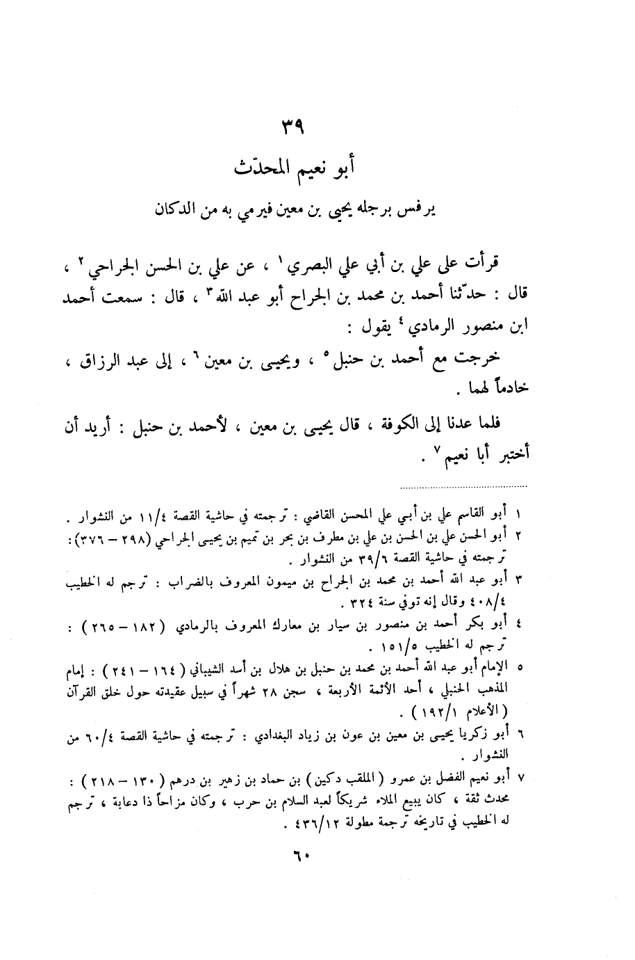 39 أبو نعيم المحدّث يرفس برجله يحيى بن معين فيرمي به من الدكان