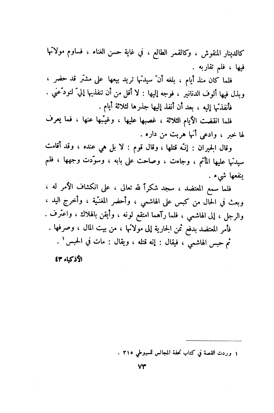 فأمر المعتضد بدفع ثمن الجارية إلى مولاتها، من بيت المال، وصرفها.