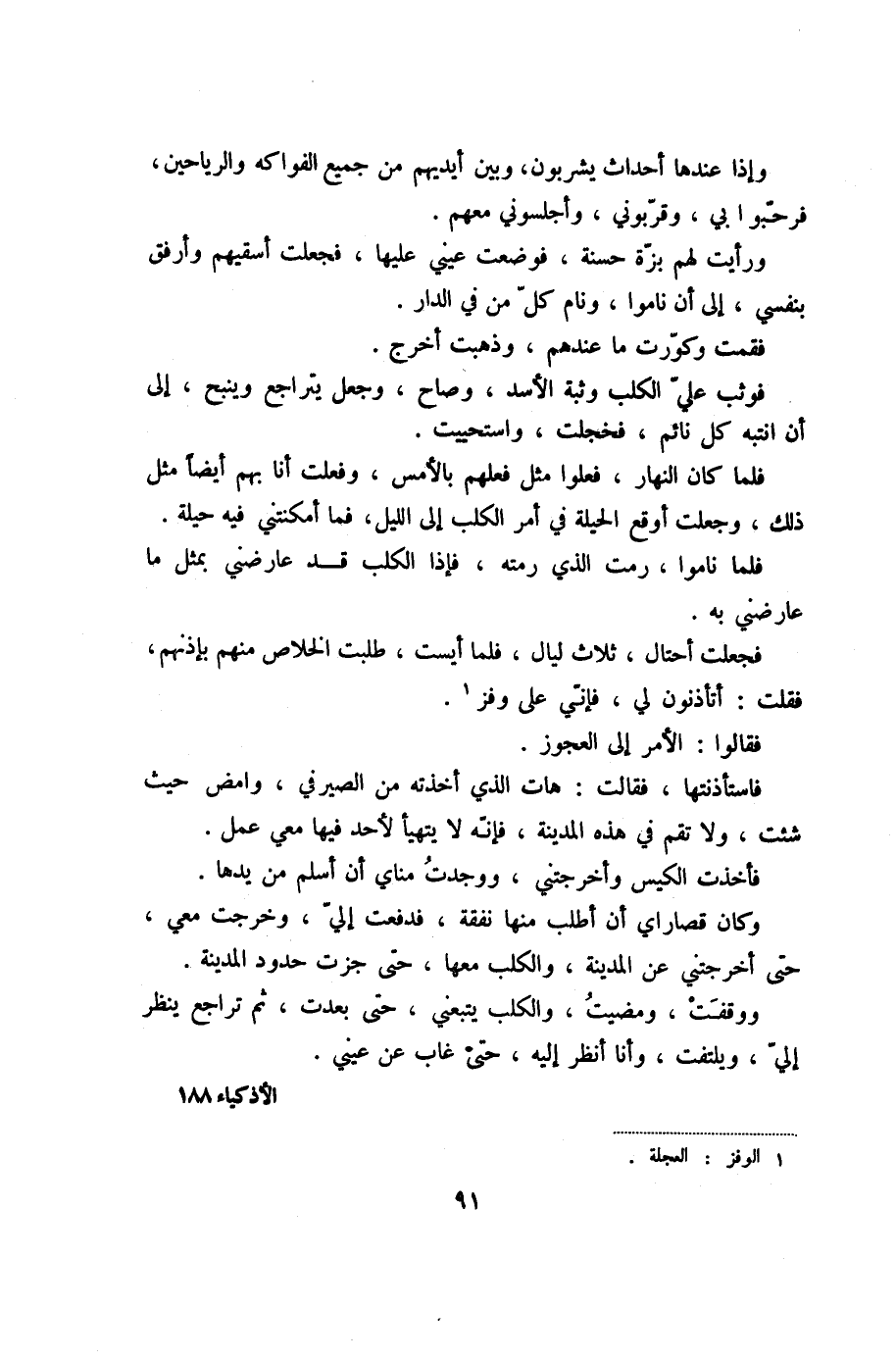 ووقفت، ومضيت، والكلب يتبعني، حتى بعدت، ثم تراجع ينظر إليّ، ويلتفت، وأنا أنظر إليه، حتى غاب عن عيني.