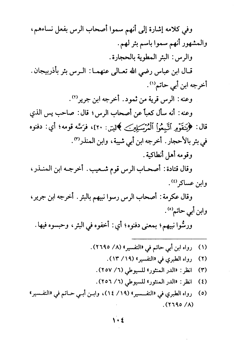 وعنه: الرس قرية من ثمود. أخرجه ابن جرير (¬2).