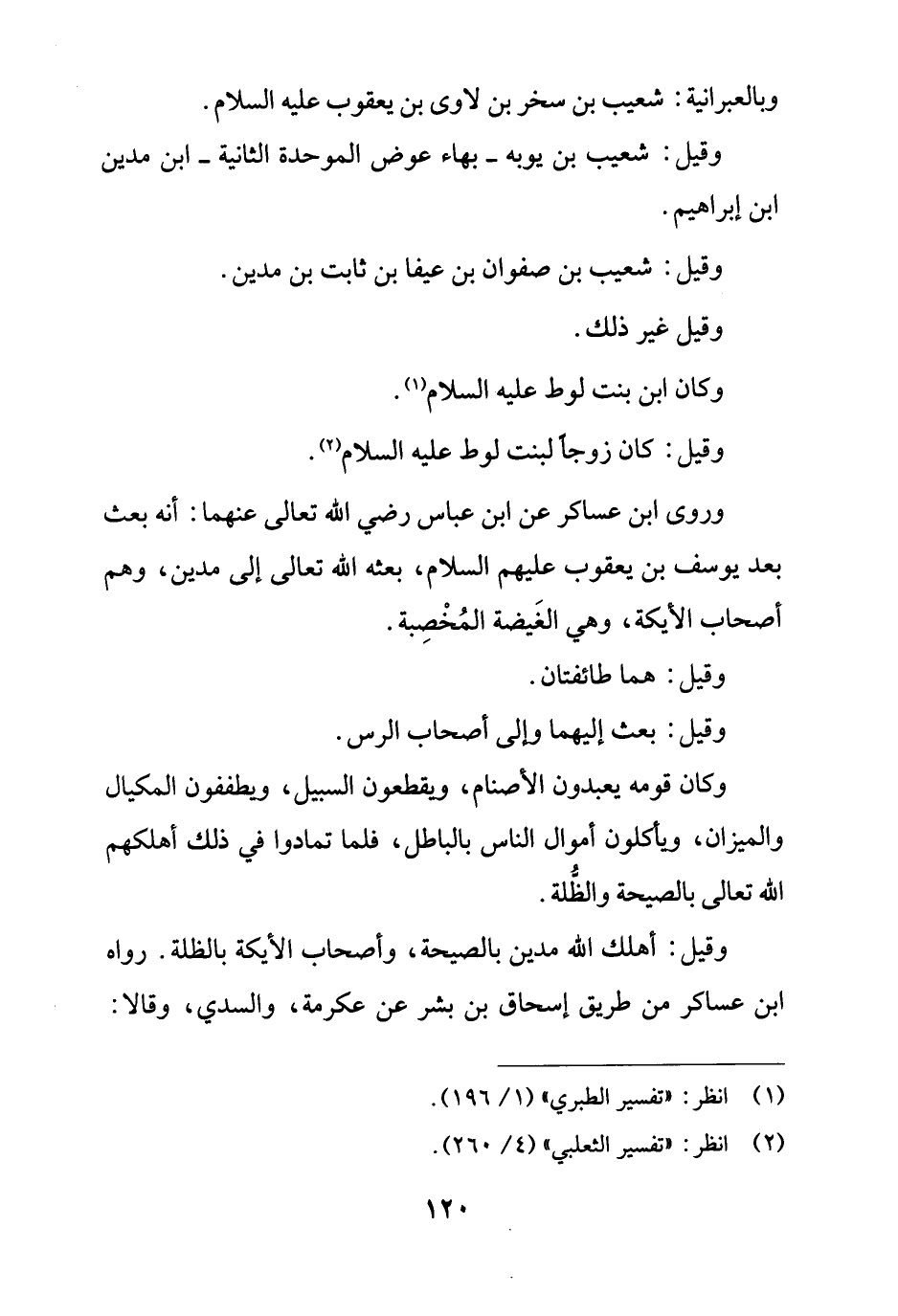 وقيل: شعيب بن صفوان بن عيفا بن ثابت بن مدين.