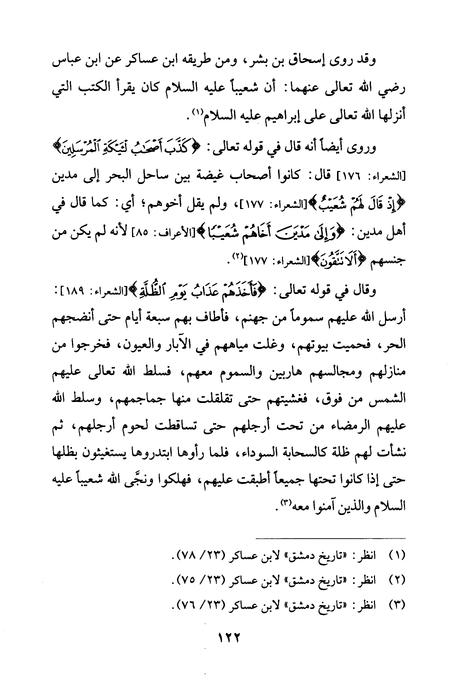 وقد روى إسحاق بن بشر، ومن طريقه ابن عساكر عن ابن عباس رضي الله تعالى عنهما: أن شعيبا عليه السلام كان يقرأ الكتب التي أنزلها الله تعالى على إبراهيم عليه السلام (¬1).