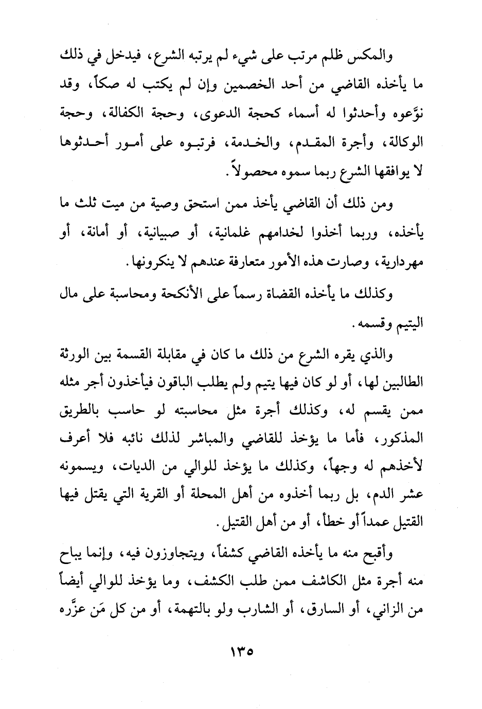 وكذلك ما يأخذه القضاة رسماً على الأنكحة ومحاسبة على مال اليتيم وقسمه.