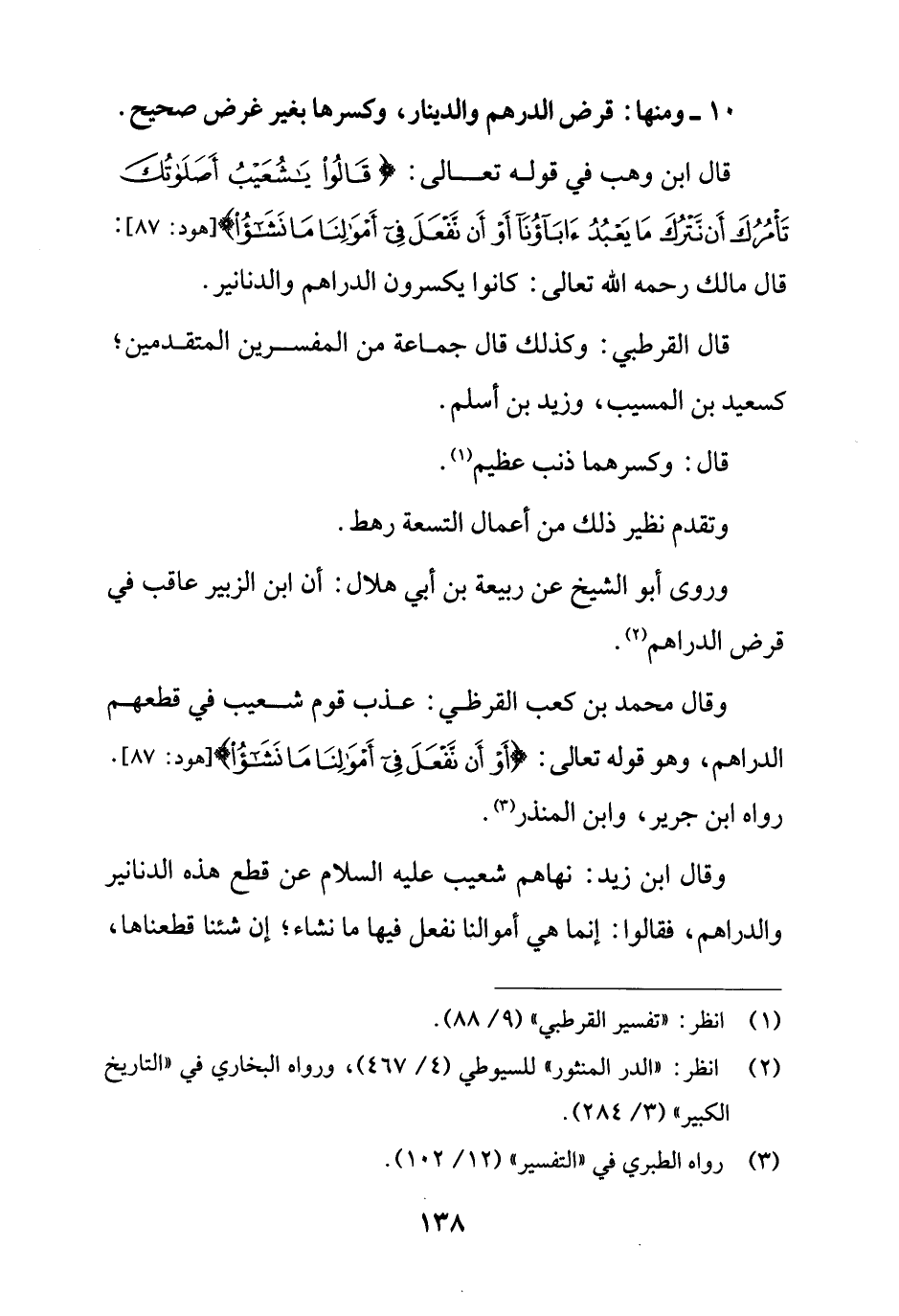 وقال محمد بن كعب القرظي: عذب قوم شعيب في قطعهم الدراهم، وهو قوله تعالى: {أَوْ أَنْ نَفْعَلَ فِي أَمْوَالِنَا مَا نَشَاءُ} [هود: 87].