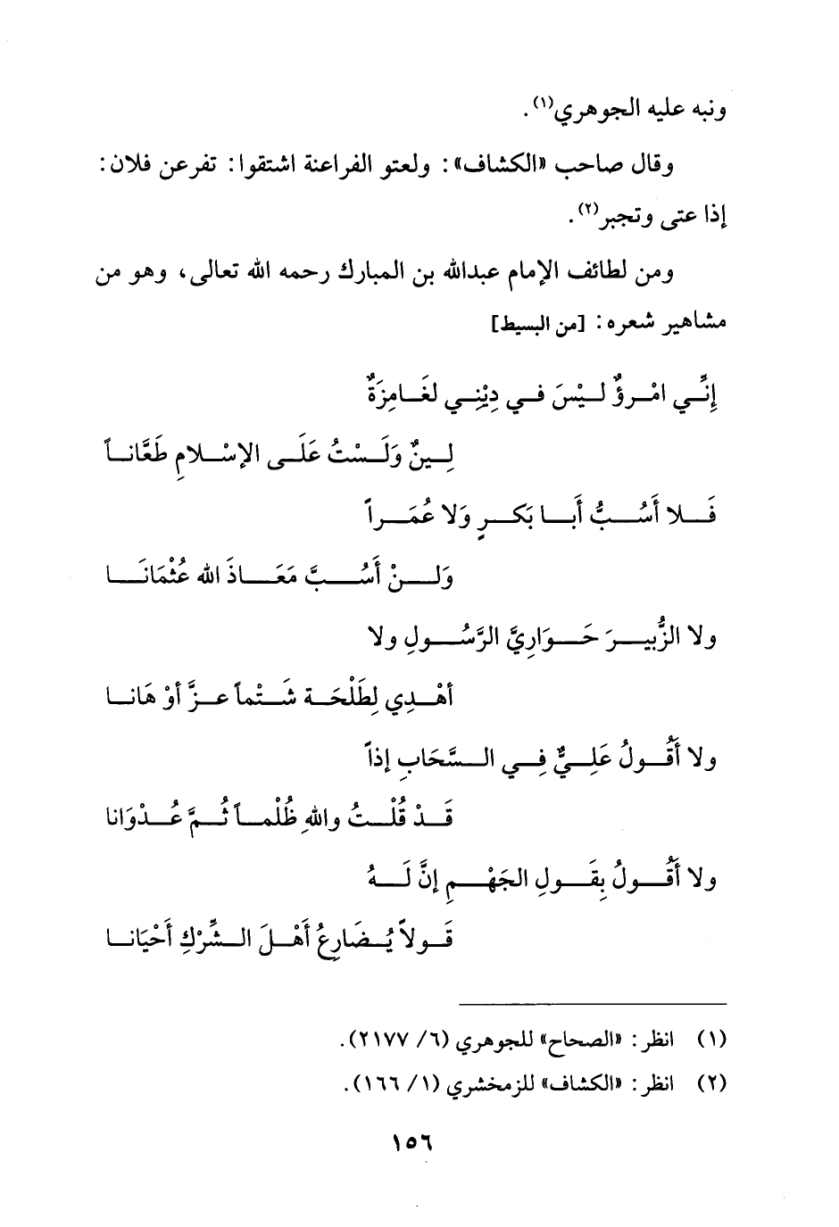 فَلا أَسُبُّ أَبا بَكرٍ وَلا عُمَراً ... وَلنْ أَسُبَّ مَعَاذَ الله عُثْمَانَا
