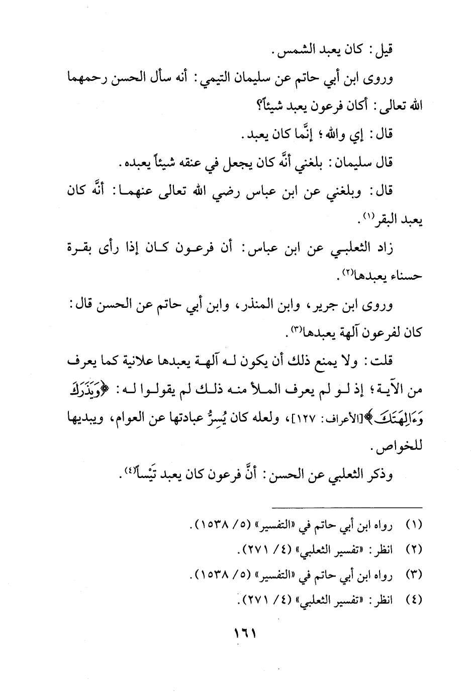وروى ابن أبي حاتم عن سليمان التيمي: أنه سأل الحسن رحمهما الله تعالى: أكان فرعون يعبد شيئاً؟