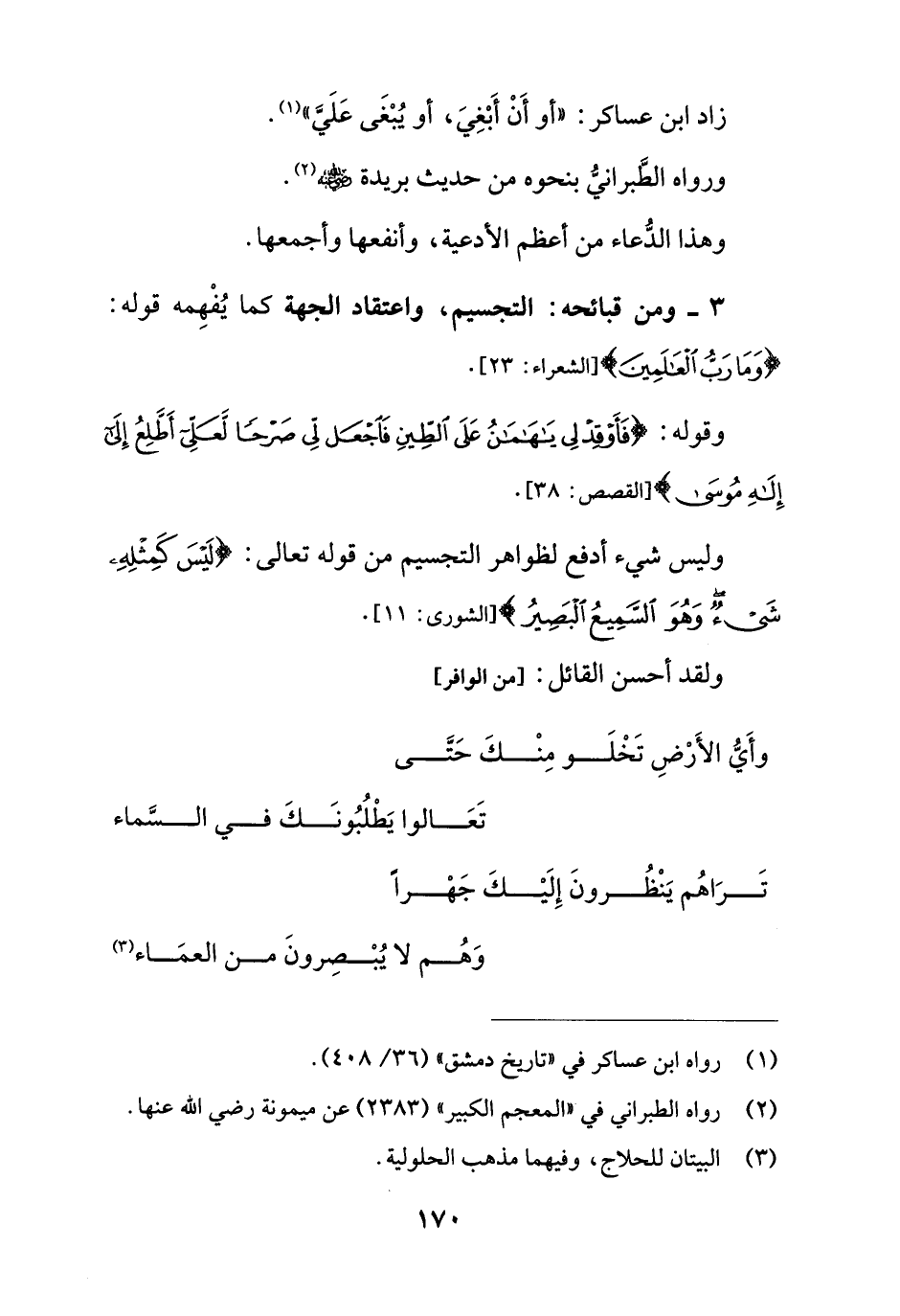 وليس شيء أدفع لظواهر التجسيم من قوله تعالى: {لَيْسَ كَمِثْلِهِ شَيْءٌ وَهُوَ السَّمِيعُ الْبَصِيرُ} [الشورى: 11].